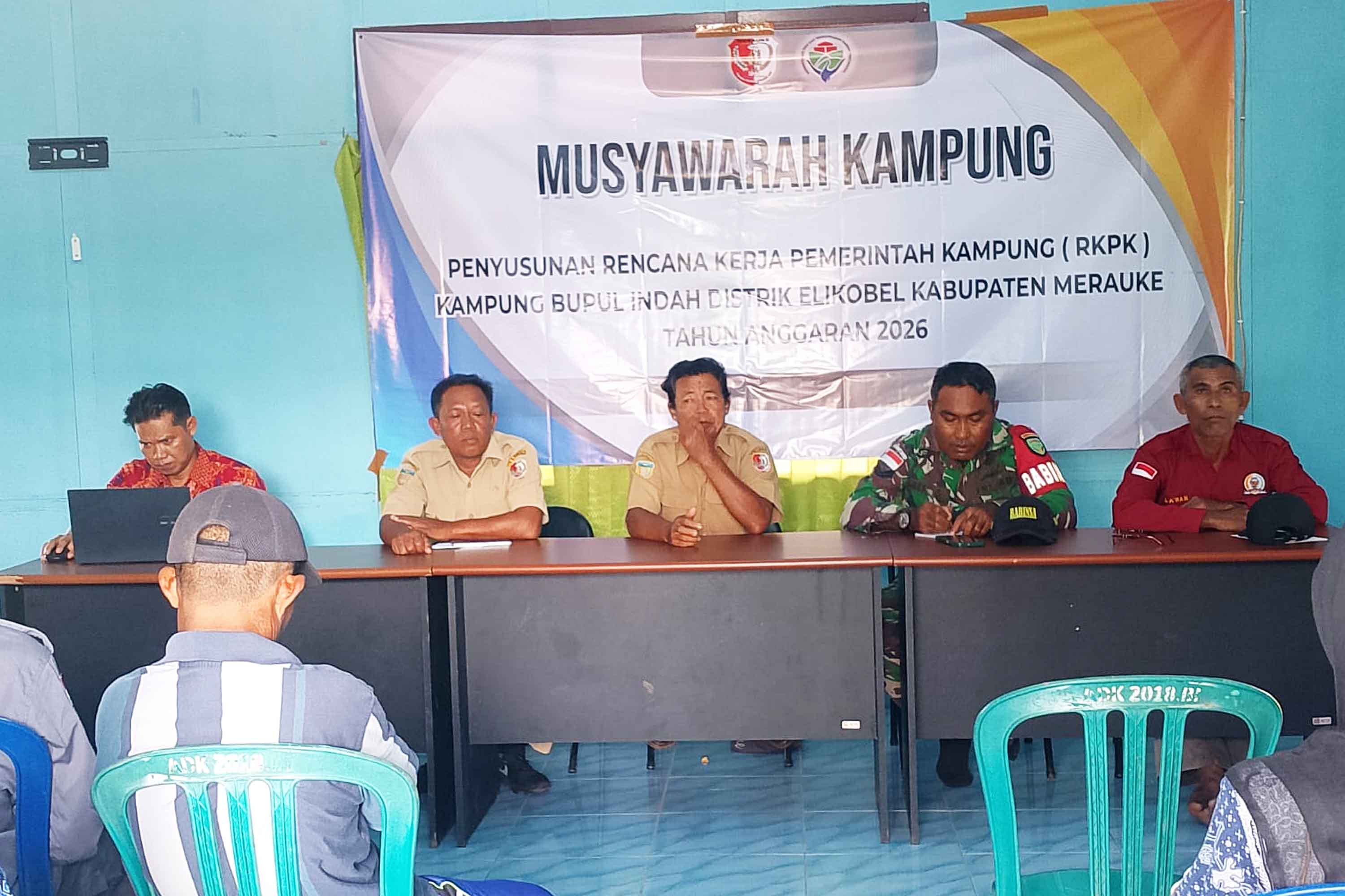 berlangsung penuh kekeluargaan yang turut dihadiri Kepala Kampung Bupul Indah Bapak Jasmin, Sekretaris Kampung Bapak Fakudin, Ketua Bamuskam Bapak La Wan, Pendamping Distrik Alexander M. Raya, P3MD PLD Siti Komanah, Kaur Perencanaan Bapak Rohim, Danton Linmas Bapak Yunus, para Ketua RW dan RT serta masyarakat Kampung Bupul Indah. Senin (23/2/26).