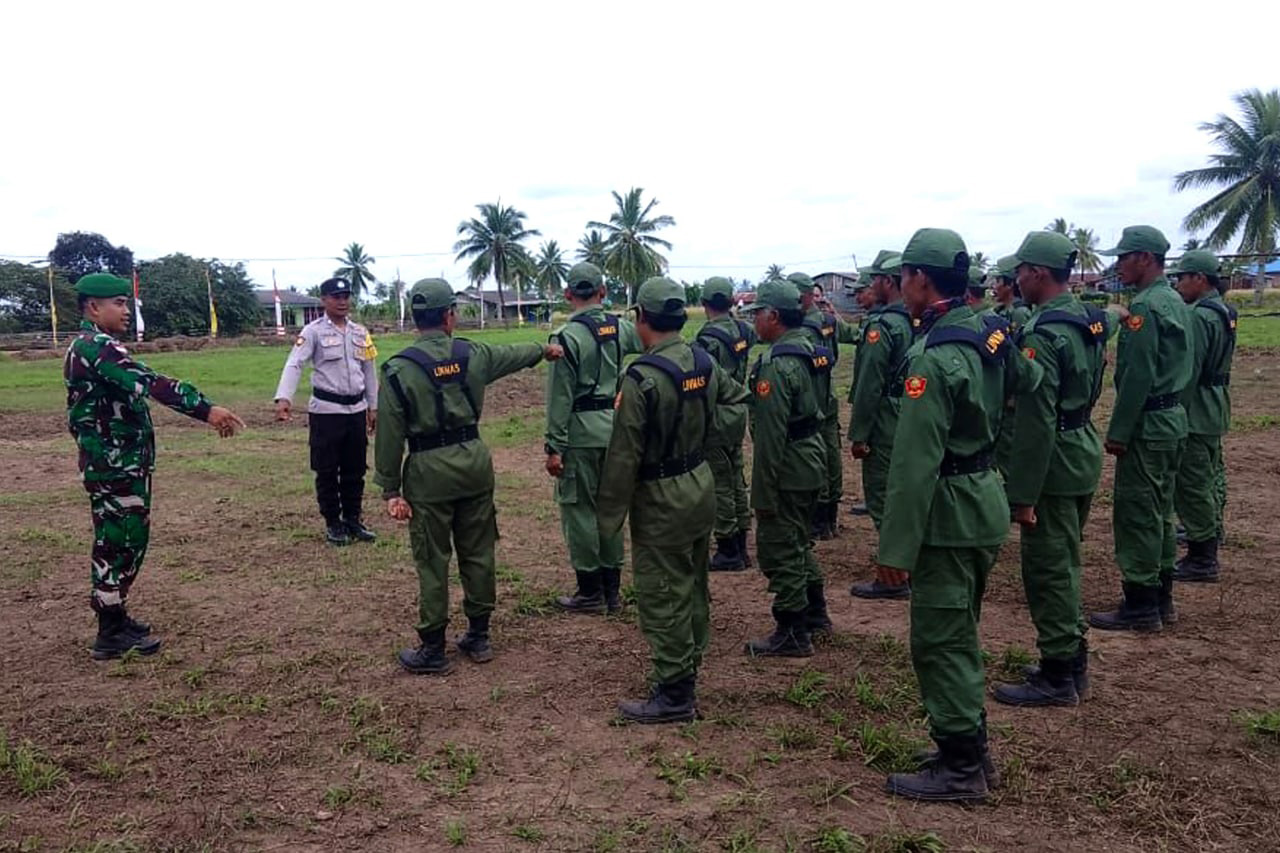 "Saya bersama Bhabinkamtibmas Polsek Tanah Miring Brigpol Talib bersama-sama memberikan pelatihan kepada 14 orang Linmas Kampung Isano Mbias SP6 dengan tujuan meningkatkan semangat dan disiplin sehingga dapat membantu setiap pelaksanaan tugas menjadi pelindung masyarakat". ucap Serka Agus.