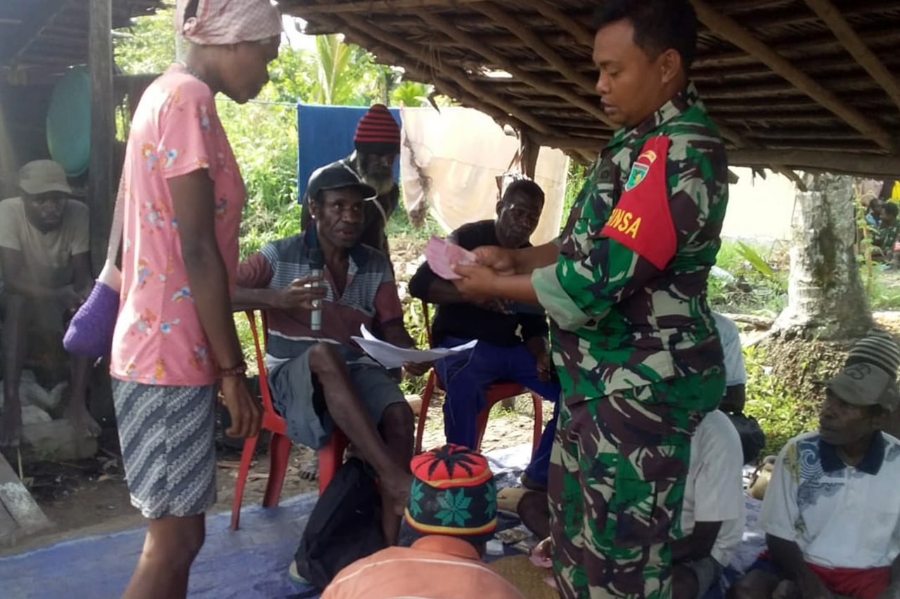 ▴kodim 1707/merauke▴ BABINSA KIMAAM DAMPINGI APARAT KAMPUNG SALURKAN BLT KEPADA MASYARAKAT WONER