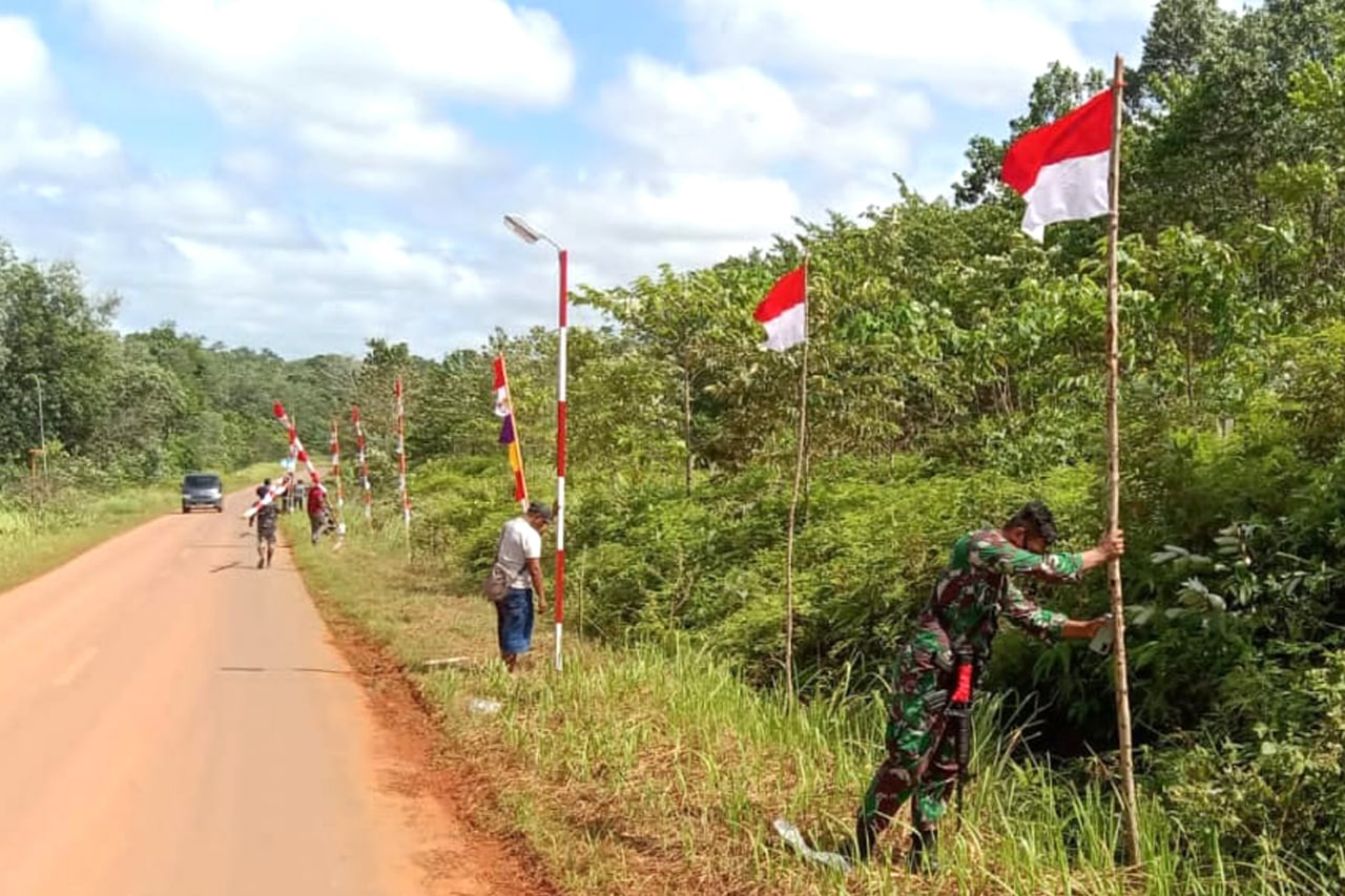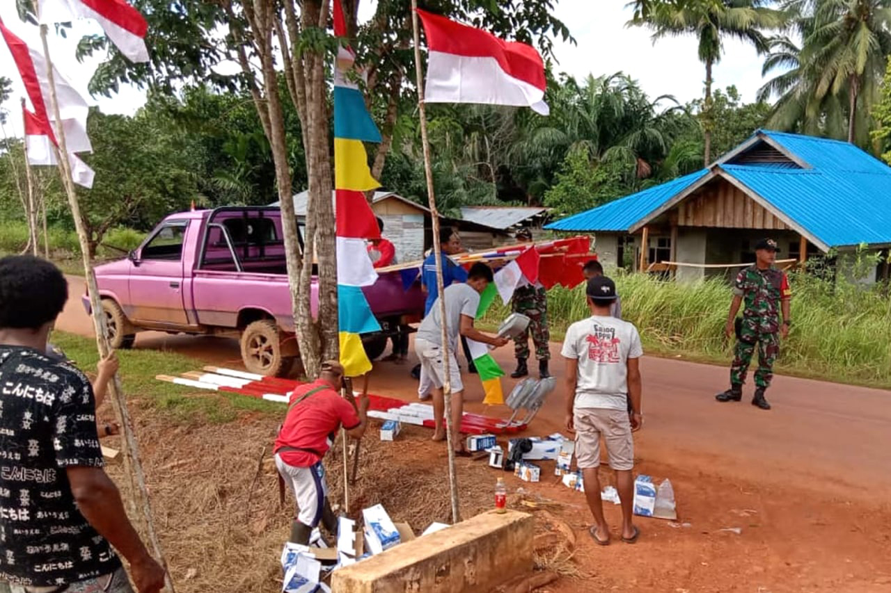 "Ratusan Bendera Merah Putih dan umbul-umbul yang kita pasang meliputi sepanjang jalan menuju Kampung Kumaaf dan Kampung Nggayu serta disetiap pinggir jalan yang berada di Kampung Kumaaf dan Kampung Nggayu serta sekitaran Kantor Distrik Ulilin". ucap Sertu Solahudin.