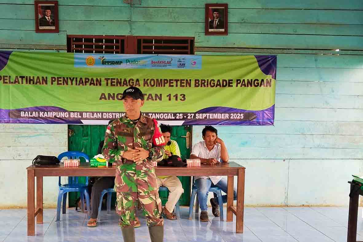 Merauke, Pada hari Sabtu, 27 September 2025 pukul 09.00 WIT, Babinsa Koramil 1707-05/Ulilin Sertu Muchammad Agus (Babinsa Kampung Belbeland) dan Koptu Lalu Zulkarnain (Babinsa Kampung Kirely), melaksanakan kegiatan pendampingan pelatihan penyiapan tenaga kerja kompeten Brigade Pangan Angkatan 113. Kegiatan yang berlangsung di Kampung Belbeland dan Kampung Kirely, Kabupaten Merauke - Provinsi Papua Selatan yang digelar oleh Balai Besar Pelatihan Pertanian (BBPP) Kementerian Pertanian.