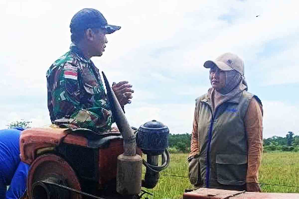 Babinsa Kampung Ngutibob Pos Ramil Tanah Miring Koramil 1707-02/Merauke Kodim 1707/Merauke Serka Sri Mulato mendampingi Pimpinan Cabang Bulog Merauke Karennu, S.E. melaksanakan kegiatan peninjauan wilayah pertanian pada Senin (06/04/2026) pukul 10.00 WIT di sawah milik Bapak Woto salah satu petani Kampung Nggutibob, Distrik Tanah Miring, Kabupaten Merauke - Provinsi Papua Selatan.
