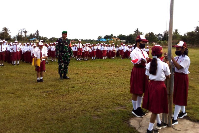 "Sebagai aparat teritorial yang hampir dalam tugas kesehariannya bersentuhan langsung dengan masyarakat, saya selalu berusaha untuk bisa berada ditengah-tengah masyarakat dan membantu mengatasi barbagai kesulitan yang ada termasuk melakukan pembinaan teritorial seperti yang saat ini saya lakukan yaitu menjadi pembina upacara di SD Inpres III Kurik". ungkap Babinsa Sertu Muhamad Arif.