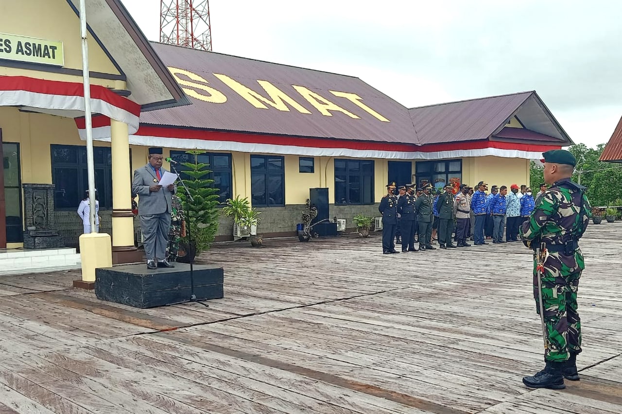 Bupati Kabupaten Asmat Elisa Kambu, S.Sos menjadi Inspektur Upacara (Irup) pada upacara peringatan Hari Ulang Tahun Ke-77 Tentara Nasional Indonesia Tahun 2022 di Kabupaten Asmat yang dilaksanakan di Halaman Mapolres Asmat Jln. Pelabuhan Baru Distrik Agats Kabupaten Asmat dan bertindak sebagai Komandan Upacara Wadan Satgas Yonif Raider 600/Modang Mayor Inf Ganda Samosir sedangkan Perwira Upacara Danpos AL Kab. Asmat Letda Laut (PM) Nunung Isbandi. Rabu (5/10/2022).