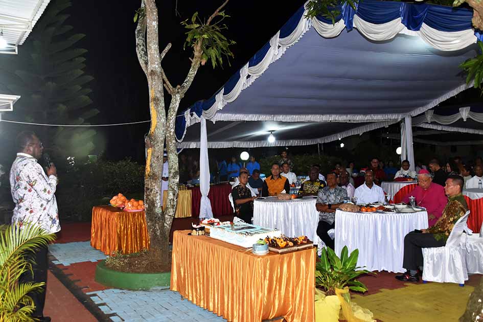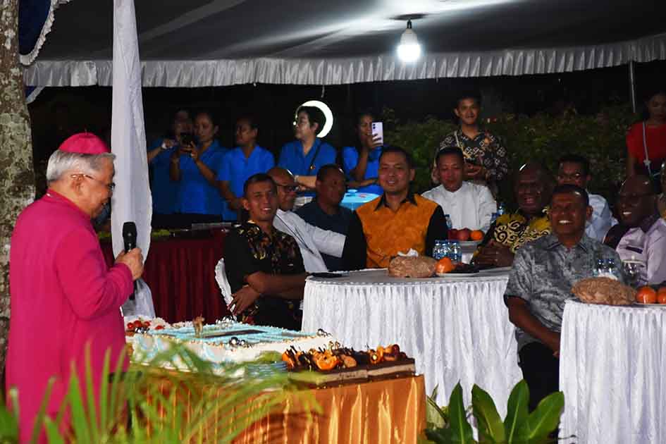 Merauke – Suasana penuh syukur dan kebersamaan mewarnai perayaan hari ulang tahun ke-77 Uskup Agung Merauke Mgr. Petrus Canisius Mandagi, M.Sc yang digelar pada Senin (27/4/2026) malam di Wisma Unio Keuskupan Agung Merauke, Jalan Raya Mandala, Distrik Merauke, Kabupaten Merauke - Provinsi Papua Selatan. Kegiatan yang berlangsung dari pukul 18.00 hingga 21.45 WIT tersebut diawali dengan perayaan ekaristi yang berlangsung khidmat dan diikuti sekitar 300 umat Katolik serta tamu undangan.