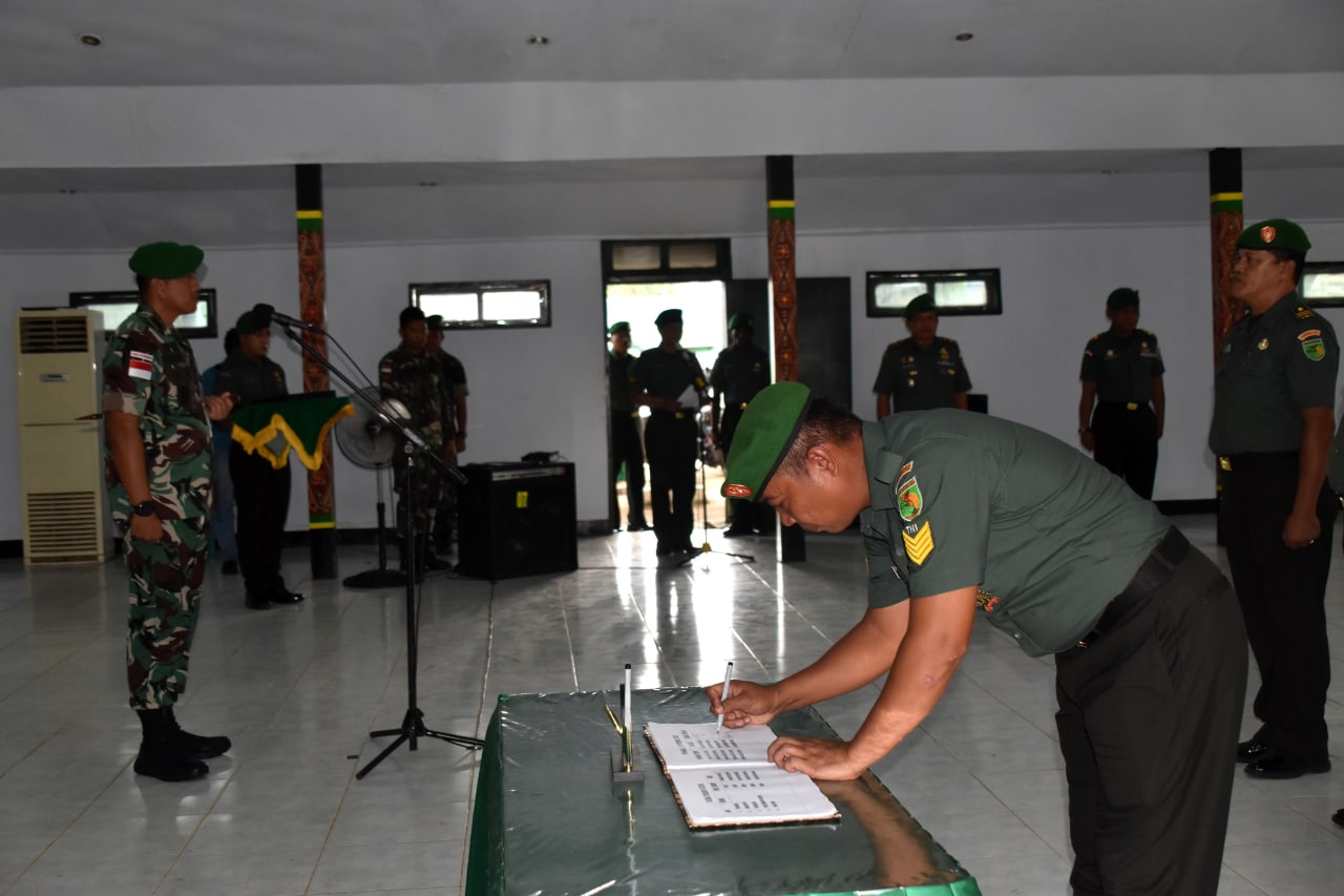Komandan Kodim 1707/Merauke Letkol Inf Bayu Kriswandito, S.Hub., Int. memimpin acara tradisi korps pindah satuan Bintara Kodim 1707/Merauke bertempat di Aula Anim Ha Makodim 1707/Merauke Jln. Raya Mandala Distrik Merauke Kabupaten Merauke. Rabu (28/9/22).