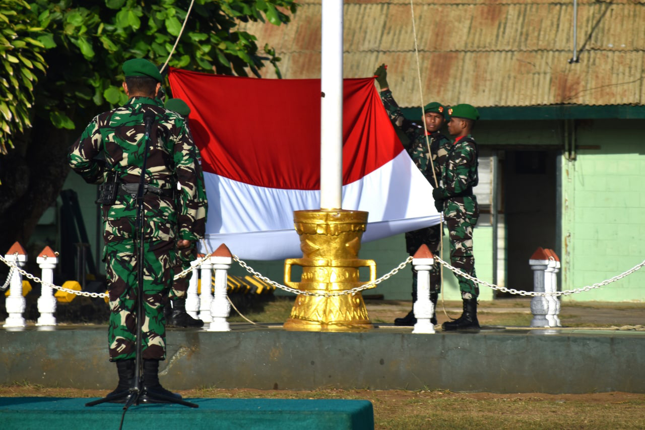 Kodim 1707/Merauke jajaran Korem 174/ATW Kodam XVII/Cenderawasih menggelar upacara pengibaran bendera merah putih, kali ini upacara pengibaran bendera merah putih dipimpin langsung oleh Komandan Kodim 1707/Merauke Letkol Inf Bayu Kriswandito, S.Hub. Int. sekaligus sebaga