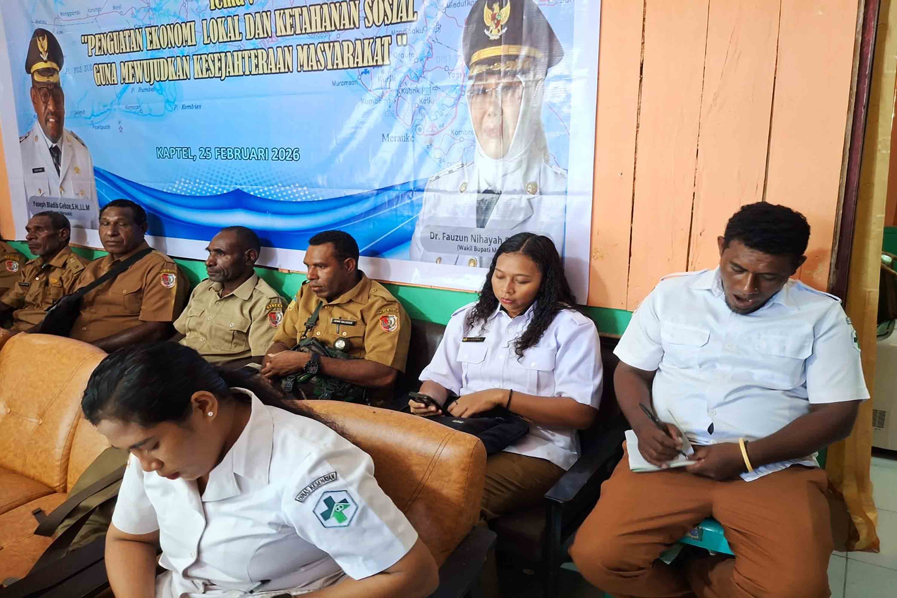 Kegiatan yang mengusung tema “Penguatan Ekonomi Lokal dan Ketahanan Sosial guna Mewujudkan Kesejahteraan Masyarakat” ini dihadiri Kepala Distrik Kaptel, para kepala kampung, Bamuskam, tenaga kesehatan, serta masyarakat.
