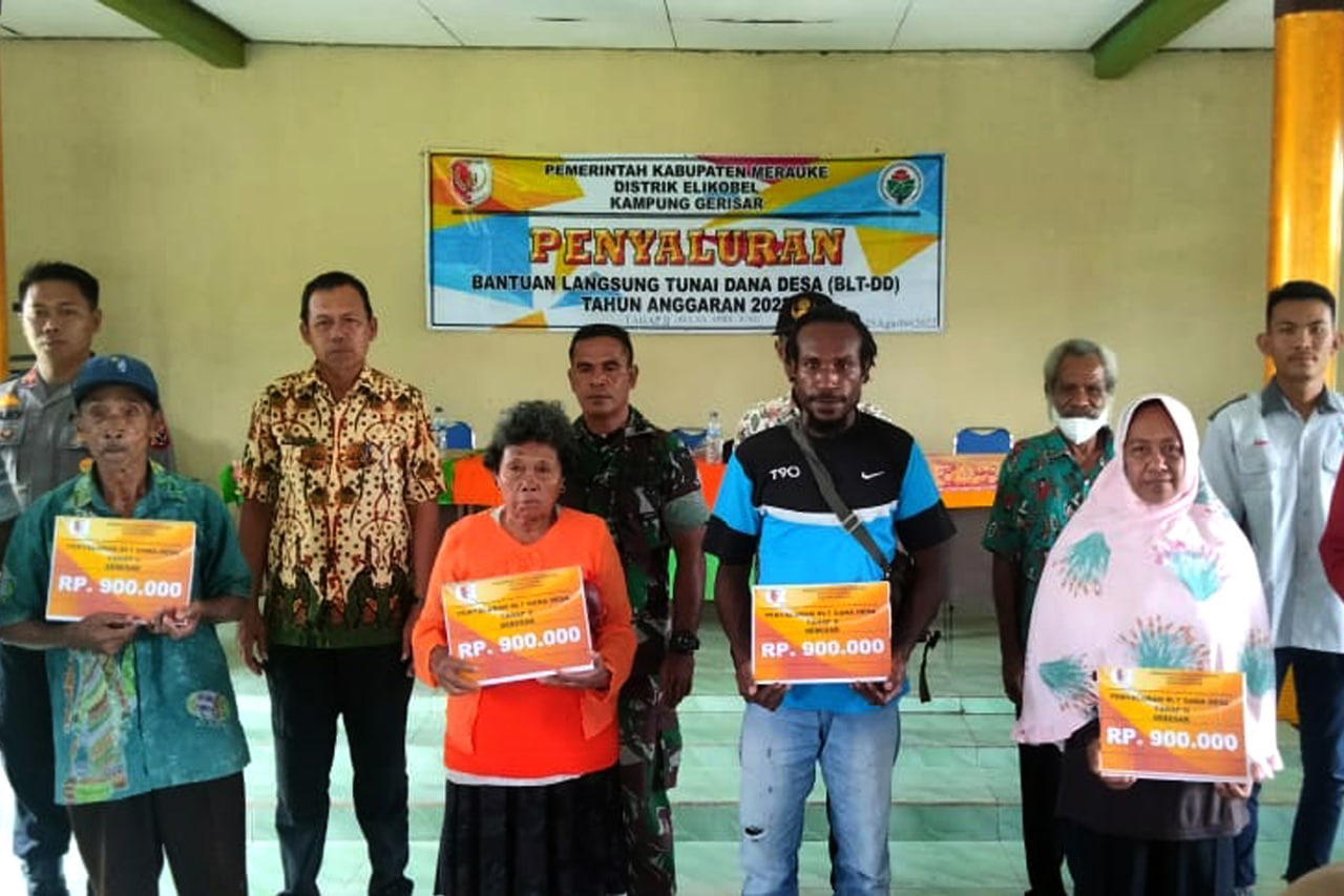 Ikut dalam membagikan BLT tersebut Kapolsek Bupul Ipda Melky Bunga, Babinsa Koramil 1707-17/Elikobel Serka Deswandi, Bhabinkamtibmas Kampung Gerisar Aiptu Semy Ettyowory, Pendamping Dana Kampung Bapak Aries dan Bamuskam Kampung Gerisar.