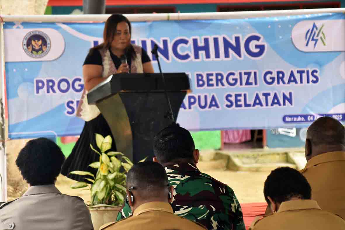 Acara diawali dengan doa bersama, dilanjutkan menyanyikan Lagu Kebangsaan Indonesia Raya dan Lagu Tanah Papua. Dalam sambutannya, Ketua Yayasan Putri Papua Selatan Maria Dorolusa Liu, berharap kegiatan MBG yang dilaksanakan mempunyai dampak positif dalam menangani masalah stunting di Papua Selatan.