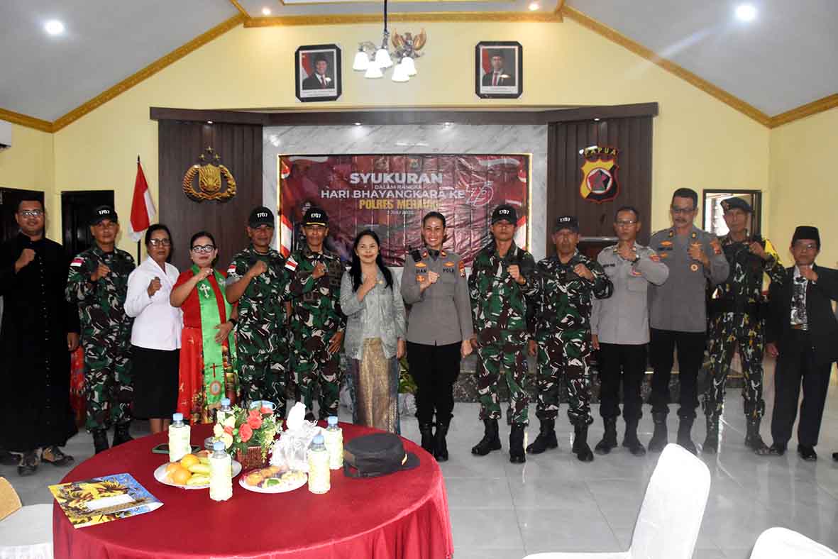 ”Kegiatan ini merupakan bentuk apresiasi dan dukungan kami kepada Polres Merauke. Di usia Bhayangkara yang ke-79 ini, semoga Polri semakin profesional, dicintai masyarakat, dan selalu bersinergi dengan TNI menjaga kondusivitas wilayah”. ujar Mayor Inf La Haruni.