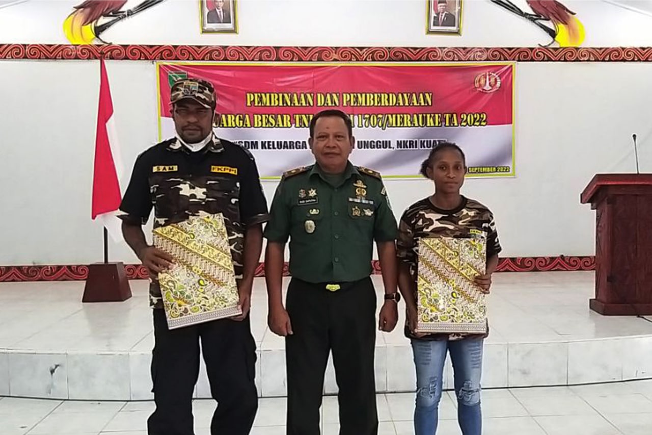 Turut hadir pada kegiatan Pembinaan dan pemberdayaan Keluarga Besar TNI Kodim 1707/Merauke Tahun 2022 tersebut Pasi Teritorial Kodim 1707/Merauke Lettu Inf Tare dan perwakilan para pelajar SMP, SMA dan SMK yang berada di wilayah Kota Merauke.