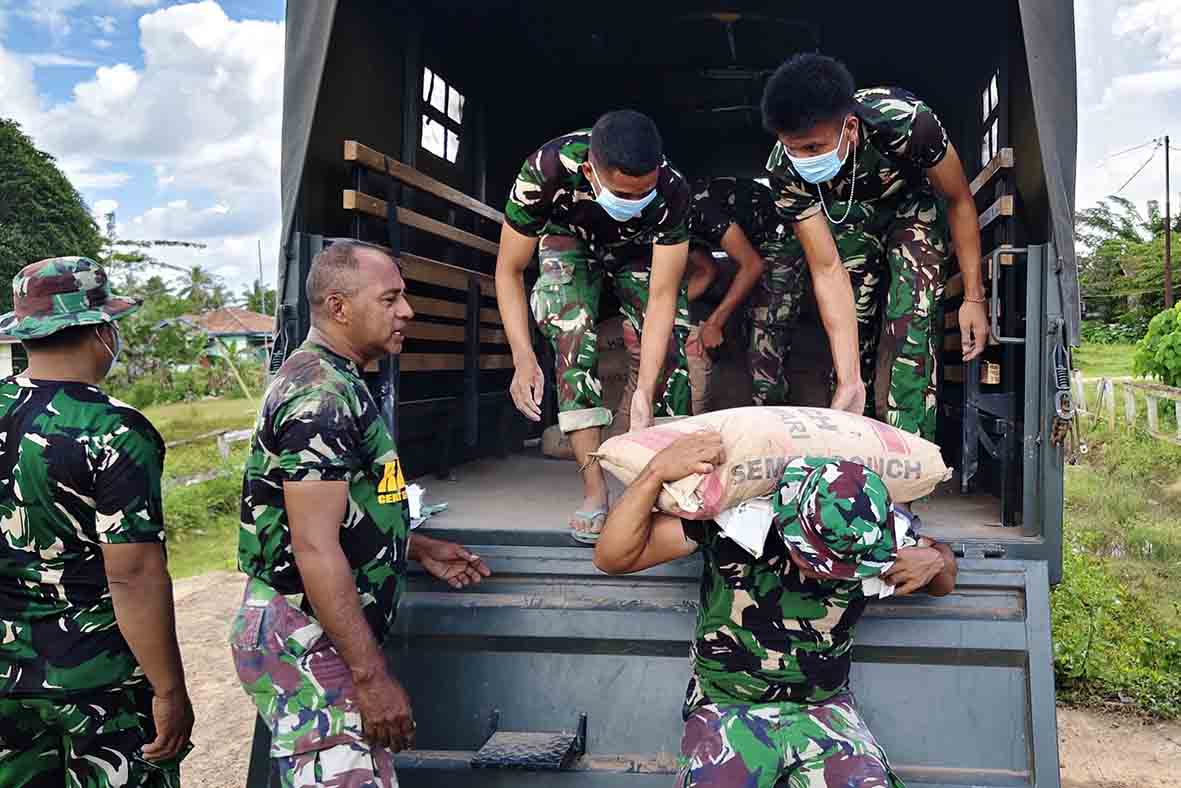 ▴kodim 1707/merauke▴ PAHLAWAN PEMBANGUNAN TIBA; PERSONEL SATGAS TMMD DISAMBUT HANGAT OLEH WARGA