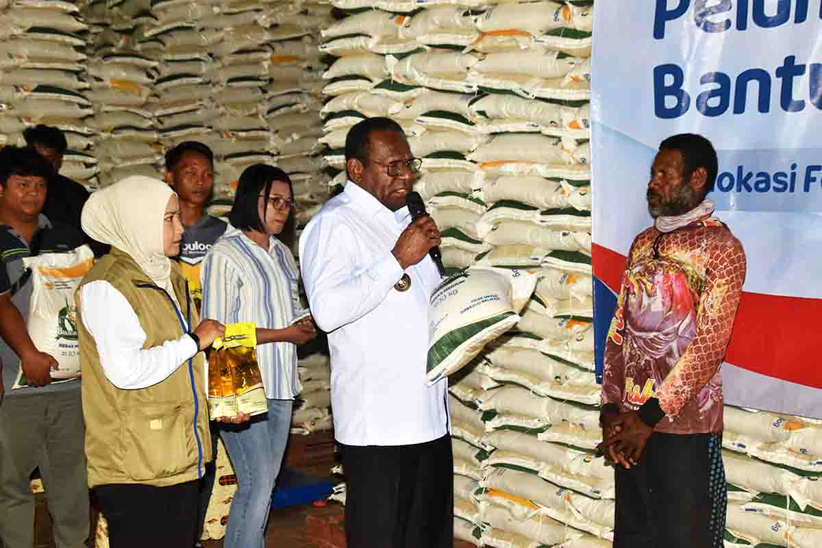 Dalam kesempatan tersebut, bantuan pangan juga diserahkan secara simbolis kepada perwakilan masyarakat sebagai tanda dimulainya distribusi di wilayah Kabupaten Merauke.