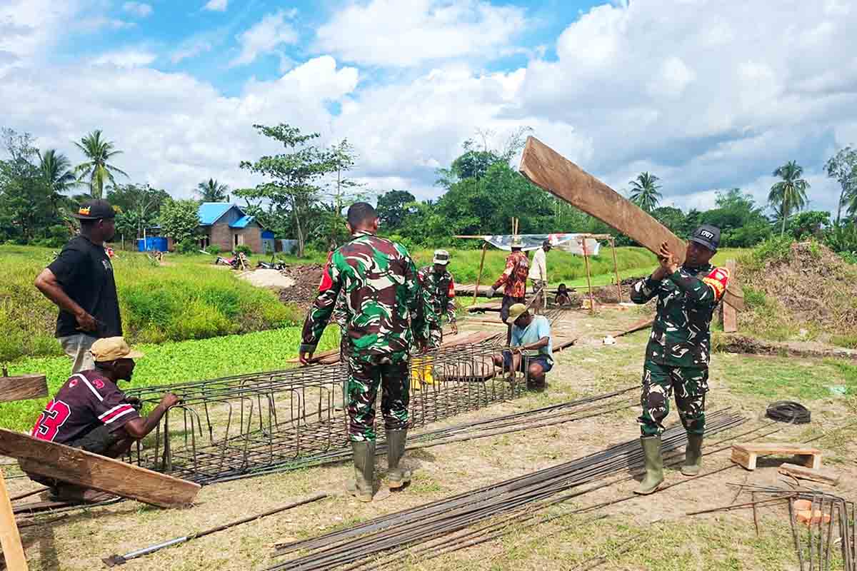 Proses pengerjaan jembatan dilakukan secara gotong royong dengan melibatkan berbagai unsur, mulai dari para pekerja, Babinsa Koramil 1707-02/Merauke yang dipimpin oleh Serma Sahrain hingga masyarakat setempat. Kolaborasi ini mencerminkan kuatnya sinergi antara TNI dan Rakyat dalam membangun daerah.