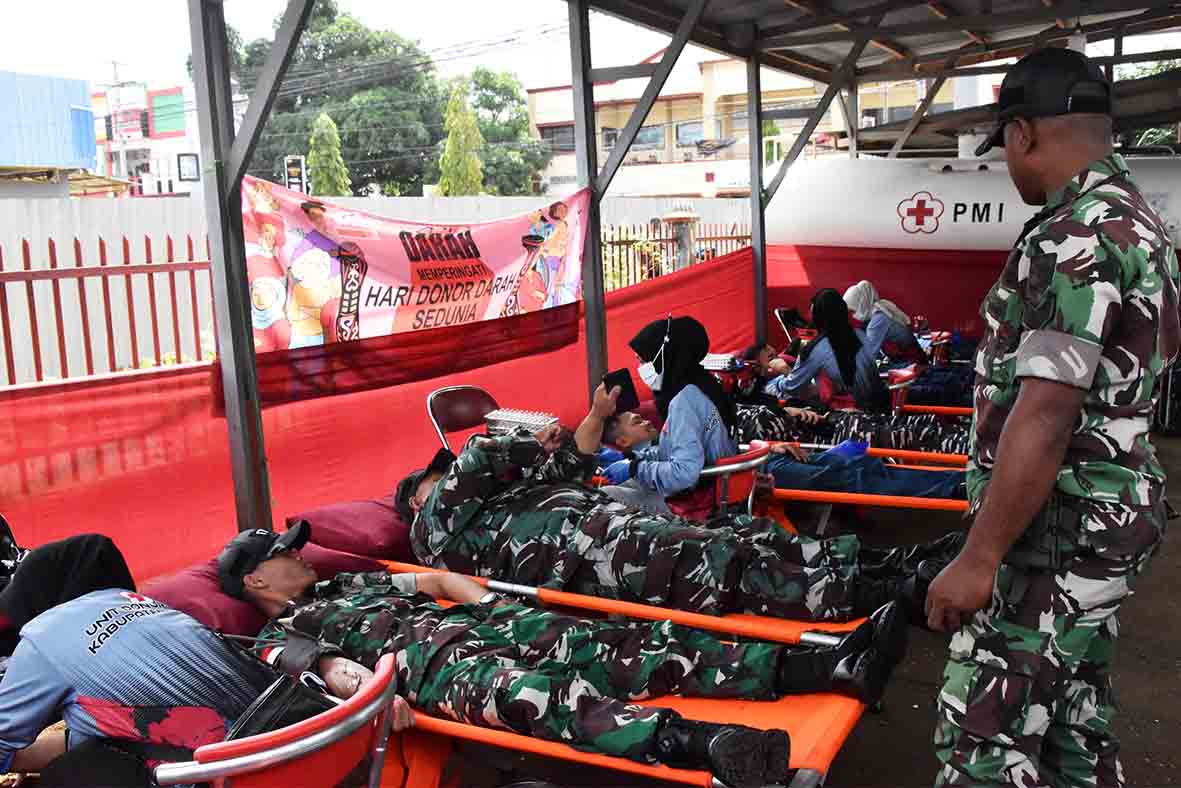 Merauke, 18 Juni 2025 - Dalam semangat kemanusiaan dan solidaritas, ratusan personel TNI-Polri, termasuk puluhan anggota Kodim 1707/Merauke, turut ambil bagian dalam aksi donor darah massal dalam rangka memperingati Hari Donor Darah Sedunia Tahun 2025 dengan tema "Berikan Darah, Berikan Harapan, Bersama Kita Menyelamatkan Nyawa."