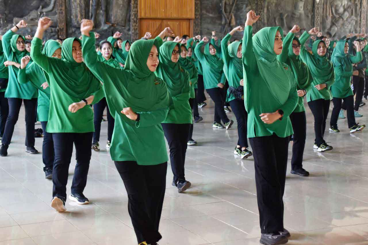 Ketua Persit Kartika Chandra Kirana Cabang XVIII Kodim 1707/Merauke, Ny. Asti Dili Eko Setyawan, bersama pengurus dan jajaran ikut memeriahkan senam bersama yang dipimpin langsung oleh Ketua Persit KCK Daerah XXIV/Mandala Trikora, Ny. Dian Lucky Avianto yang didampingi Ketua Persit KCK Koorcab Rem 174. Para Ketua Cabang jajaran PD XXIV/Mandala Trikora juga turut hadir, menambah kehangatan dan mempererat tali silaturahmi antar anggota. ????