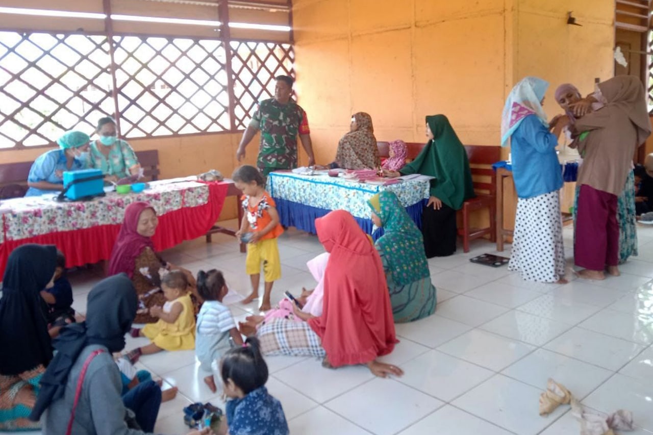 Dalam rangka ikut serta mewujudkan balita yang sehat, Babinsa Koramil 1707-05/Merauke jajaran Kodim 1707/Merauke Serka Paino membantu petugas kesehatan Puskesmas Kumbe melaksanakan kegiatan Posyandu di Dusun Yogin Kampung Kumbe Distrik Malind Kabupaten Merauke. Kamis (13/10/2022).