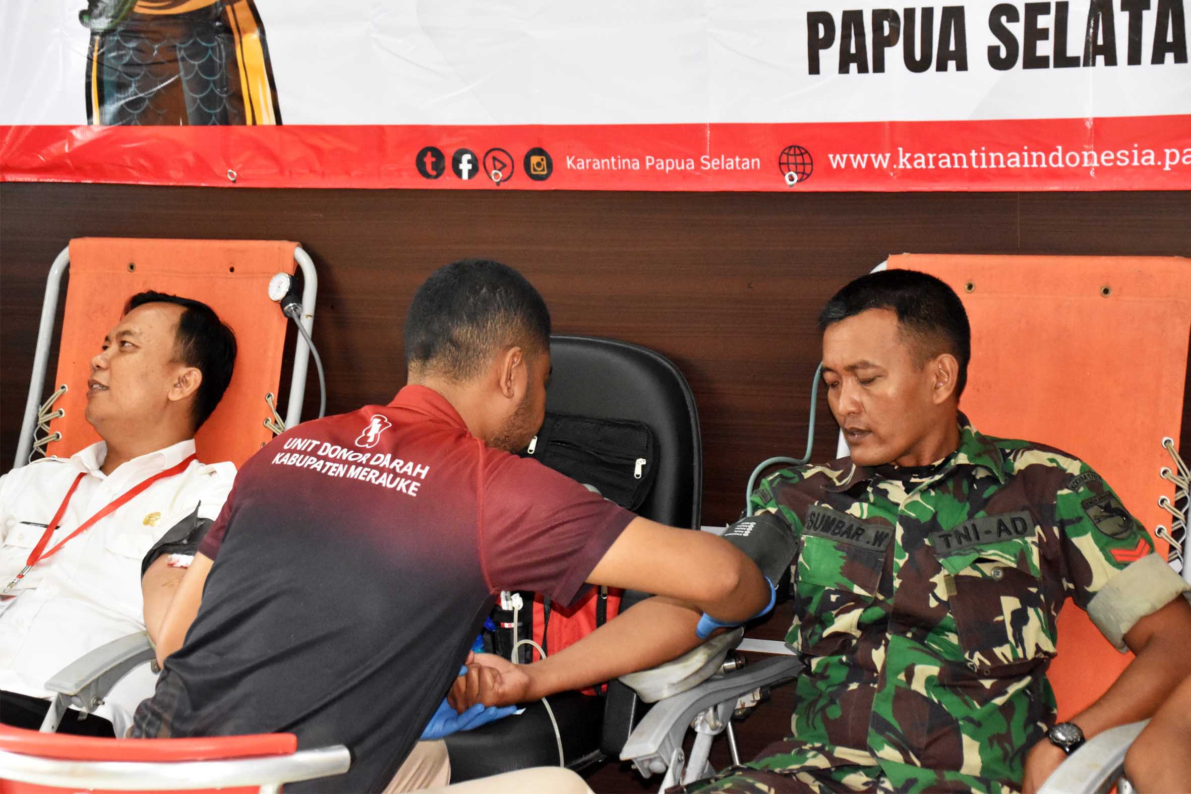 Dalam rangka memperingati Hari Karantina Ke-148, puluhan personel Kodim 1707/Merauke mengikuti kegiatan donor darah yang di gelar oleh Balai Karantina Hewan, Ikan, dan Tumbuhan Papua Selatan dengan tema “Donor . . . 0
