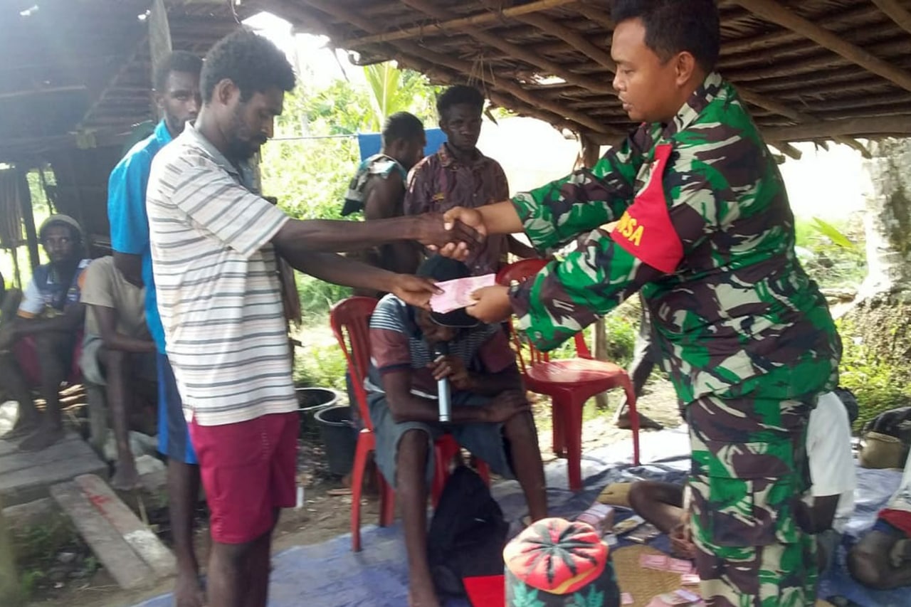 Dalam rangka ikut serta mewujudkan balita yang sehat, Babinsa Koramil 1707-05/Merauke jajaran Kodim 1707/Merauke Serka Paino membantu petugas kesehatan Puskesmas Kumbe melaksanakan kegiatan Posyandu di Dusun Yogin . . . 0