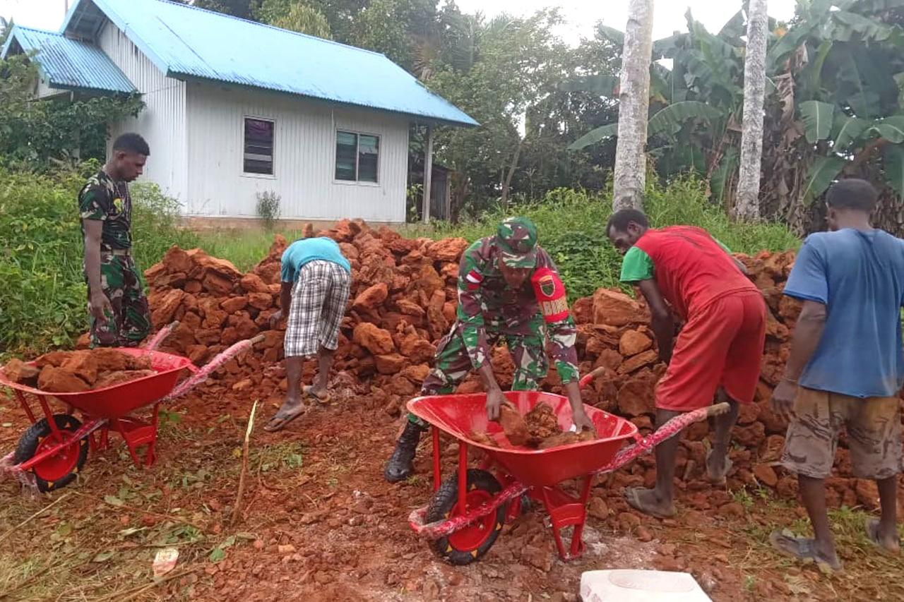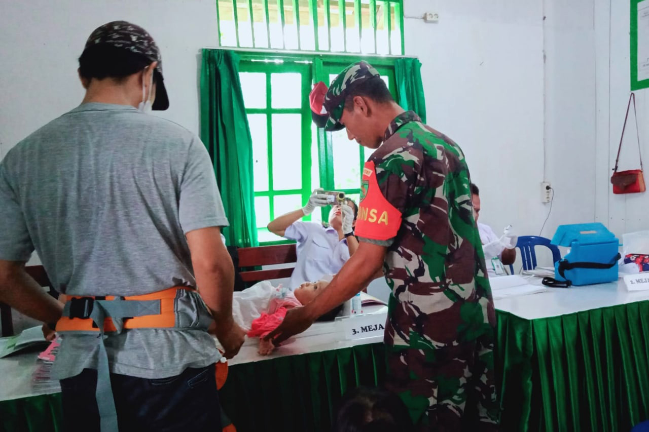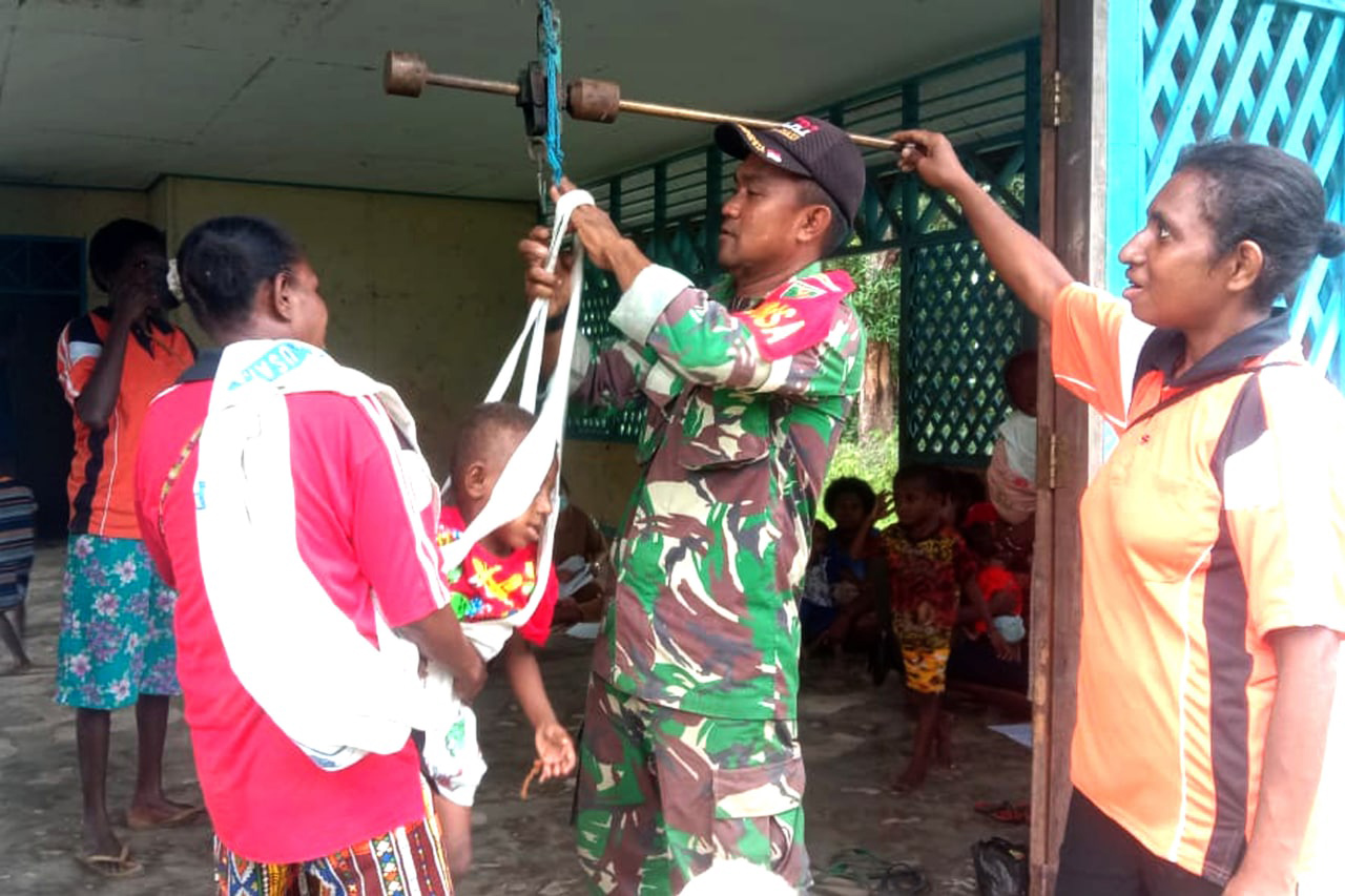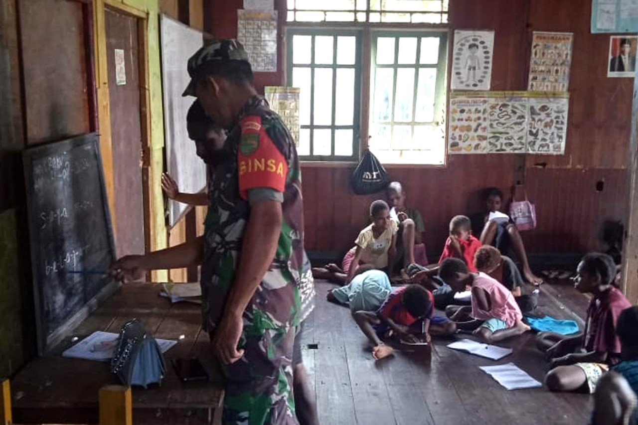 SISWA-SISWI SD YPK NGGUTI DILATIH BARIS BERBARIS OLEH BABINSA KORAMIL OKABA