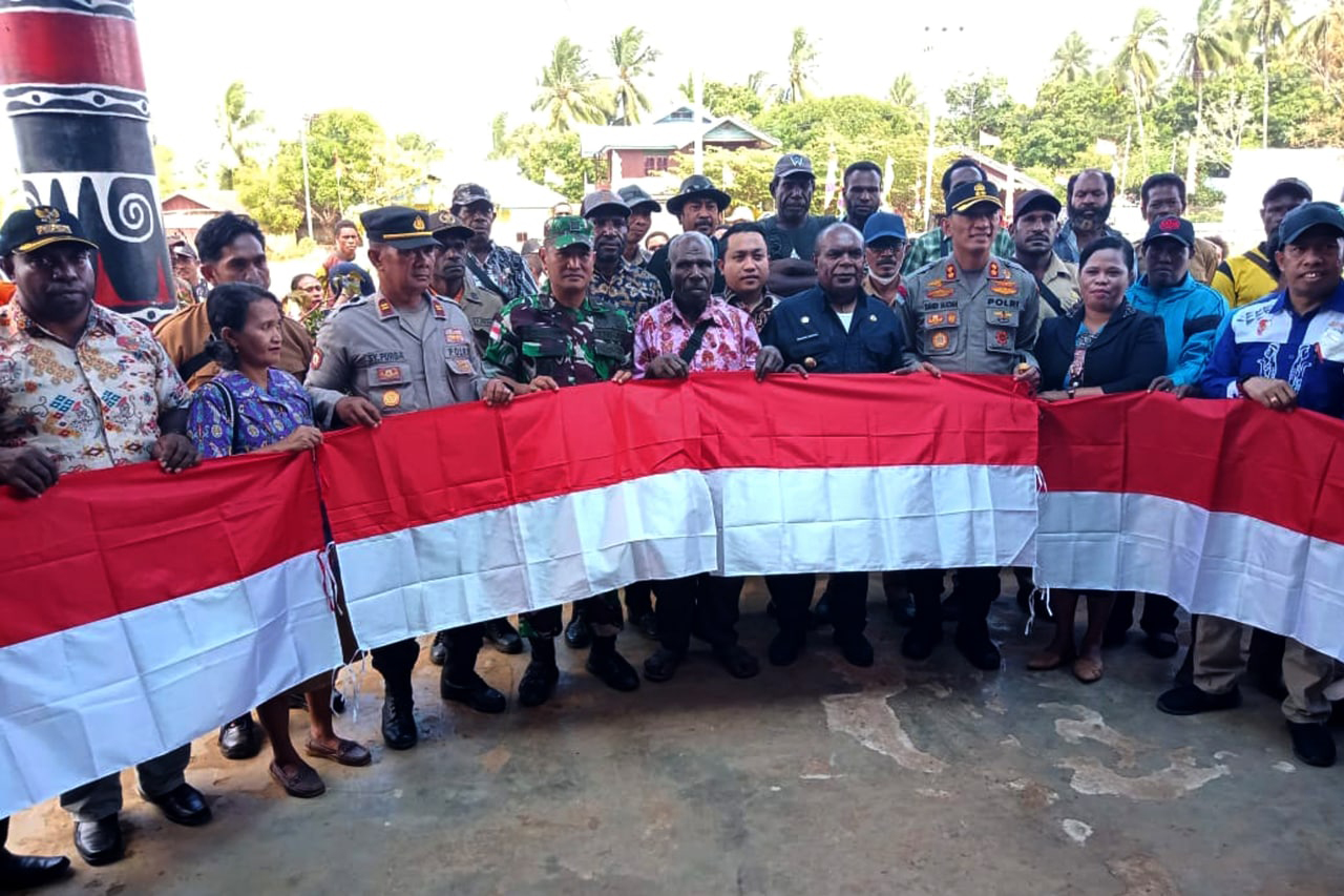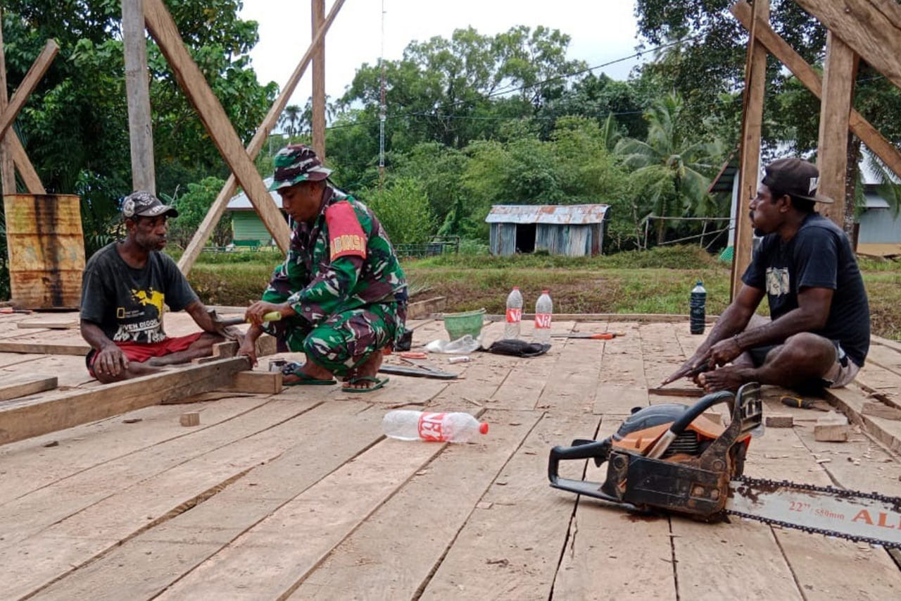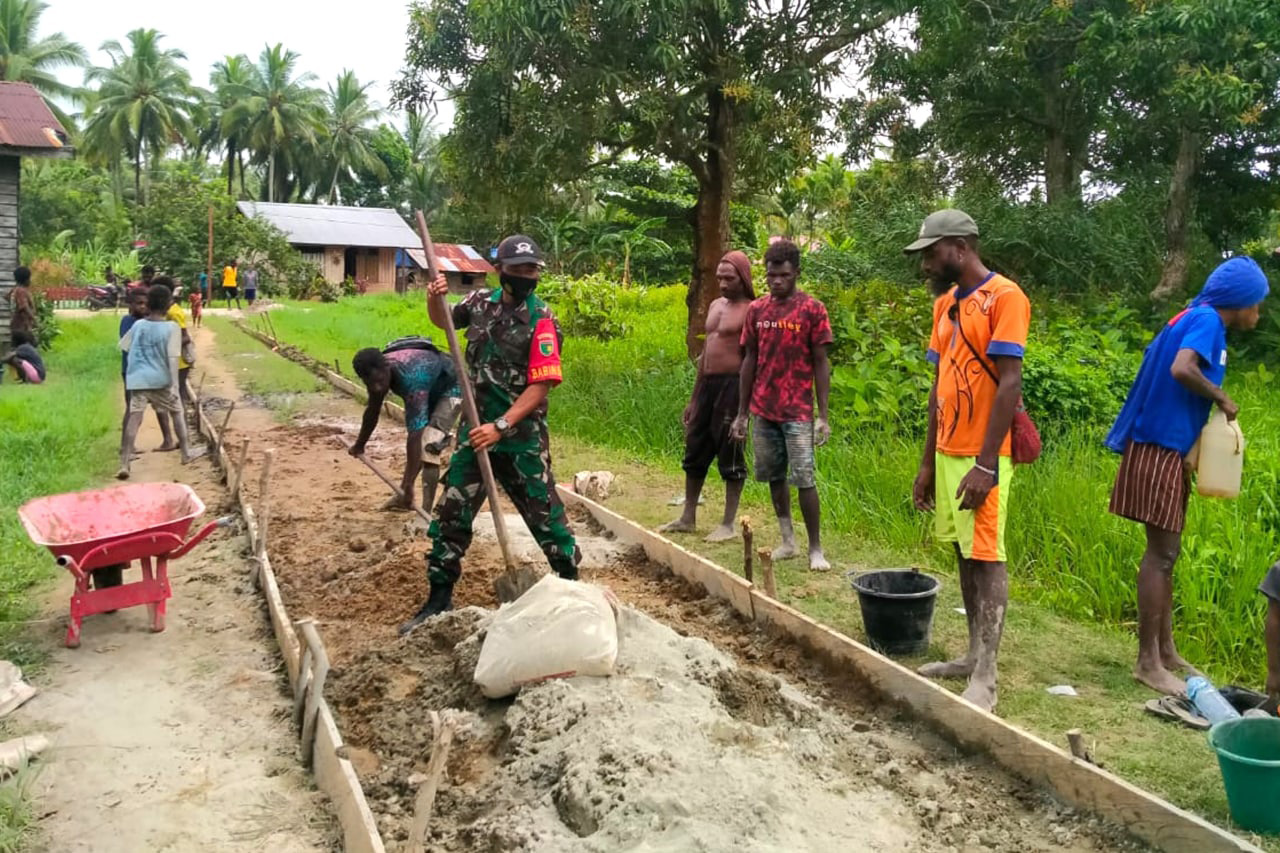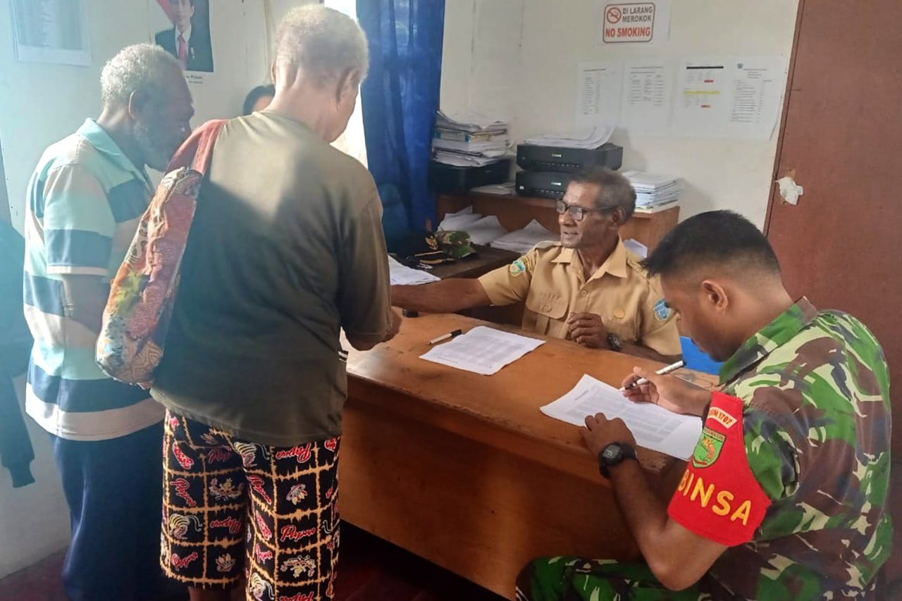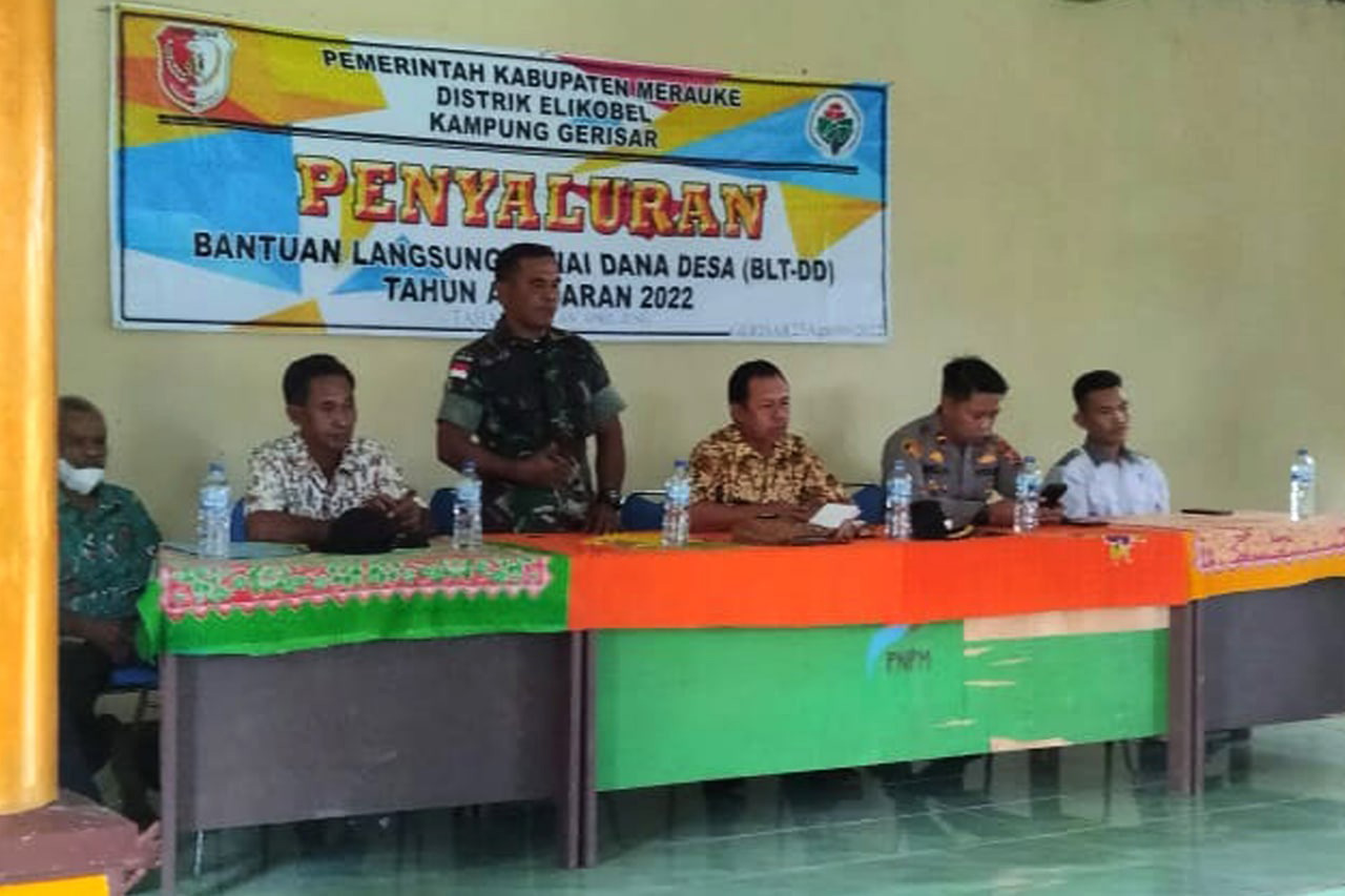 Komandan Koramil 1707-17/Elikobel Kodim 1707/Merauke Lettu Inf Abdullah Latupono melaksanakan pendampingan dan membantu Kepala Distrik Elikobel Drs. Abdul Aziz dalam melaksanakan kegiatan penyaluran BLT dari Dana Desa . . . 0
