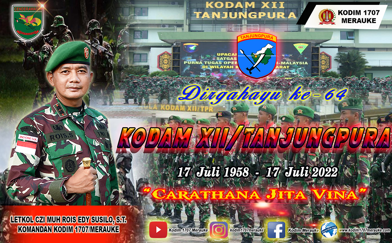 Keluarga Besar Kodim 1707/Merauke Mengucapkan Dirgahayu Ke-64 Kodam XII/Tanjungpura (17 Juli 1958 - 17 Juli 2022). "Carathana Jita . . . 0