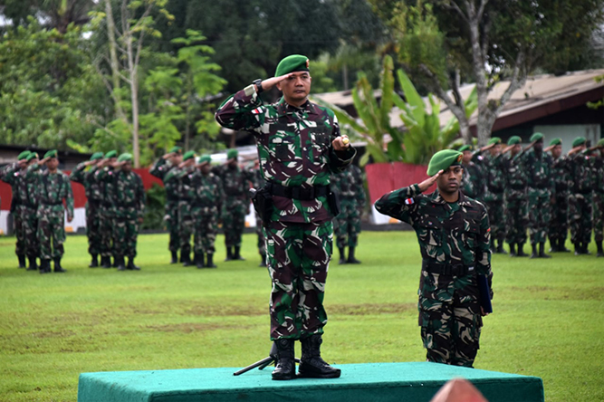 Kepala Staf Korem 174/ATW Kolonel Inf Frits Wilem Rizard Pelamonia memimpin acara pelepasan Satgas BKO Apter Kodim Persiapan Mappi Korem 174/ATW sebanyak 44 personel dalam rangka selesai melaksanakan Satgas BKO Apter . . . 0