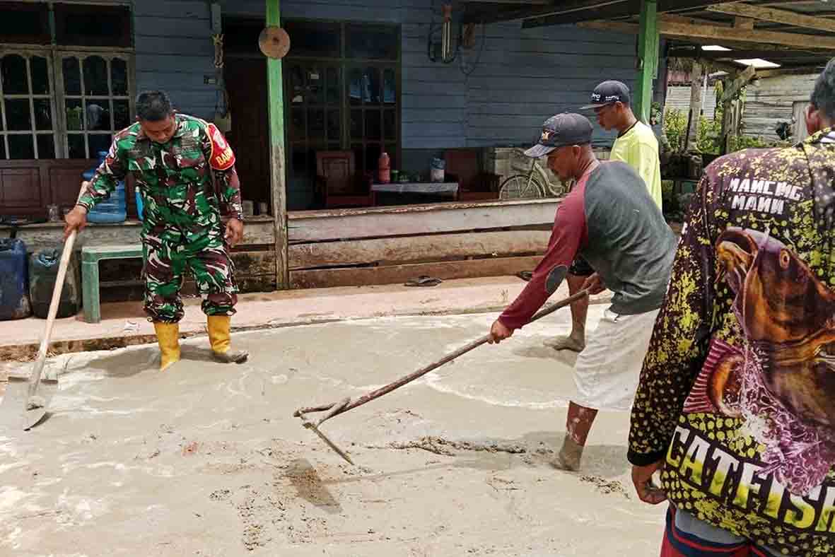 "Pada saat melaksanakan monitoring di wilayah teritorialnya Babinsa Koptu Teguh melihat keluarga Bapak Rohim dibantu tetangganya melaksanakan pengecoran halaman rumah miliknya, dan seketika itu Babinsa Koptu Teguh menunjukkan aksinya membantu melaksanakan pengecoran semen secara bersama-sama". ungkap Mayor Inf La Haruni.