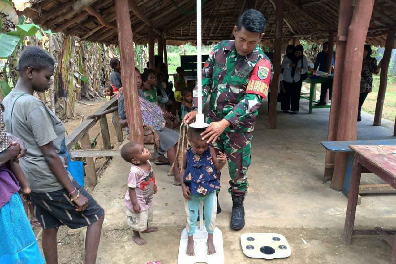 Sebanyak 61 (enam puluh satu) anak-anak Kampung Yanggandur Distrik Sota Kabupaten Merauke - Provinsi Papua Selatan mendapatkan makanan tambahan bergizi dari Koramil 1707-06/Sota yang diberikan secara langsung oleh Babinsa dan Persit Koramil 1707-06/Sota Kodim 1707/Merauke bertempat di Posyandu Yanggandur.