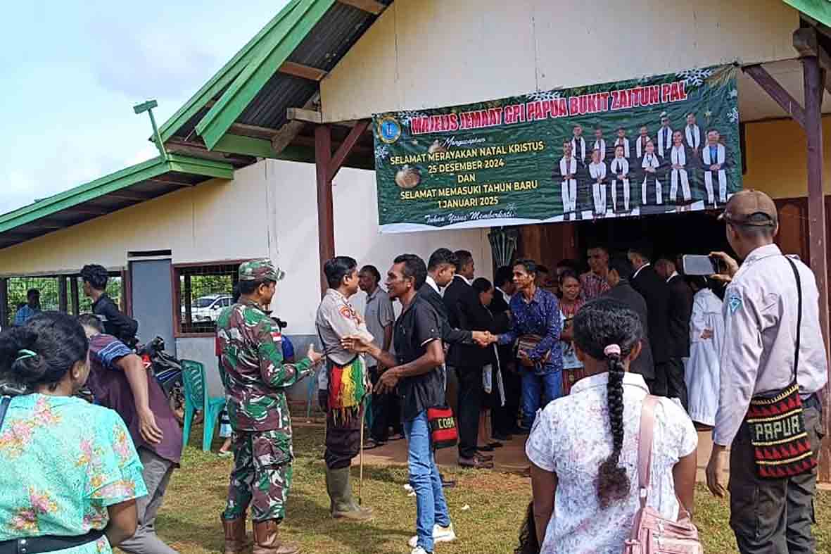 Sebagai wujud toleransi antar umat beragama dan mempererat persaudaraan, Babinsa Koramil 1707-05/Ulilin Kodim 1707/Merauke Yang dipimpin oleh Peltu Cahyono bersama Bhabinkamtibmas Pospol Sektor Ulilin melaksanakan pengamanan Ibadah Natal kepada Umat Kristiani di setiap Gereja yang berada di wilayah Distrik Ulilin Kabupaten Merauke - Provinsi Papua Selatan.