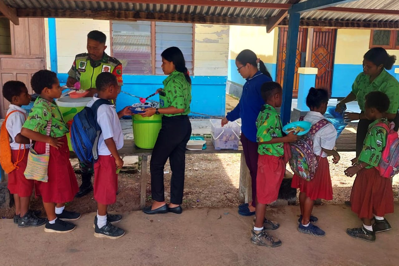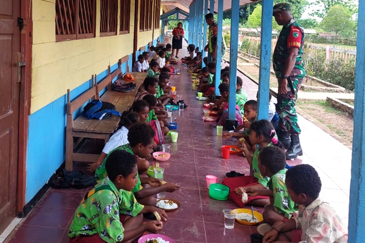 Danramil Elikobel menambahkan, adapun pemberian makanan tambahan bergizi di wilayah Koramil Elikobel terdapat 4 tempat diantaranya SD YPPK St. Mikael Kweel Kampung Kweel sebanyak 102 anak, SD YPP Santo Petrus Petrus Bupul Kampung Bupul sebanyak 129 anak dan SD YPPK Tanas Kampung Tanas sebanyak 39 anak serta Posyandu Nanbait Kampung Tanas sebanyak 37 anak.