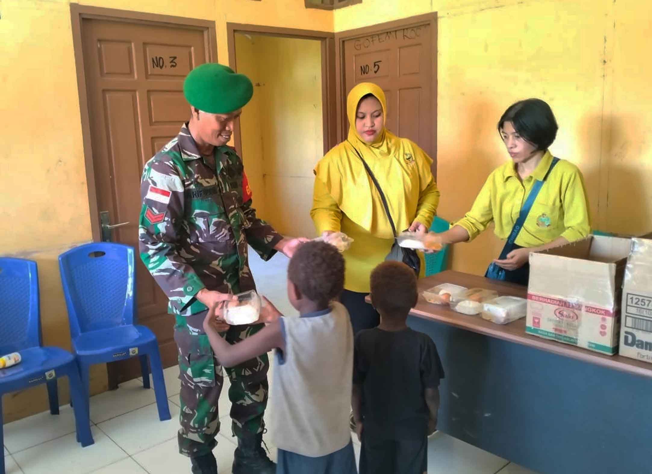 ▴kodim 1707/merauke▴ BABINSA DAN PERSIT KORAMIL KIMAAM TERUS MEMBERIKAN PMT KEPADA ANAK-ANAK KAMPUNG KIWORO