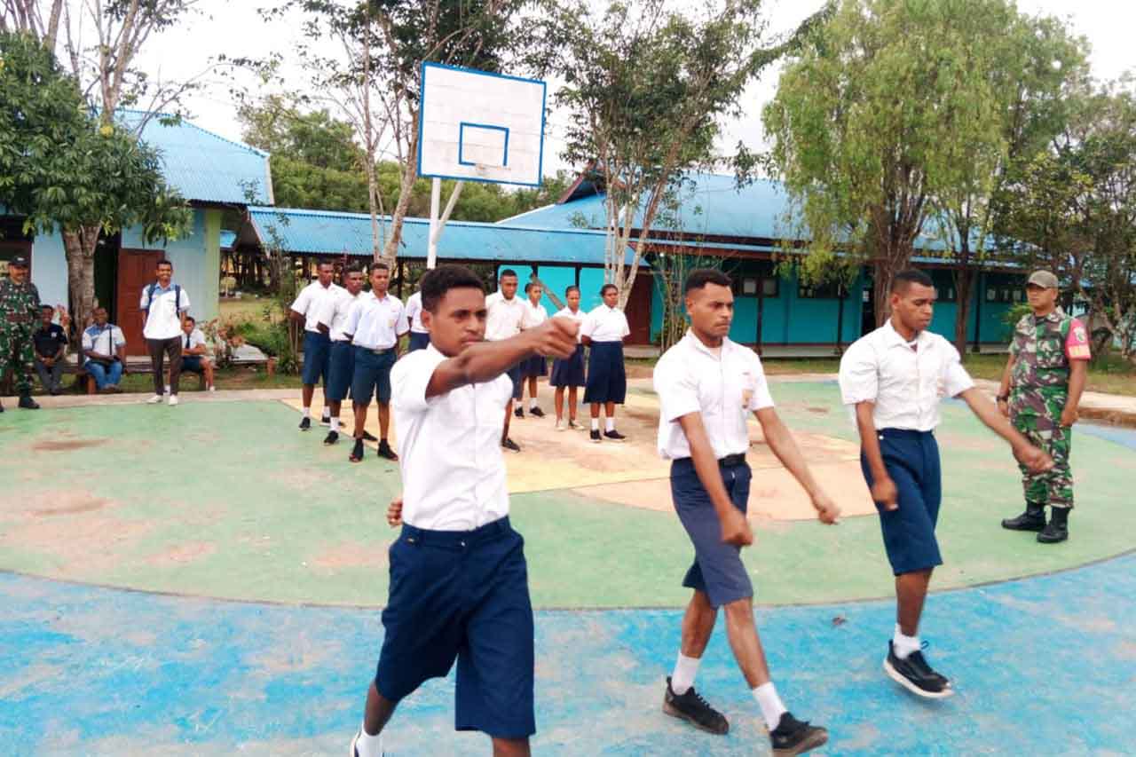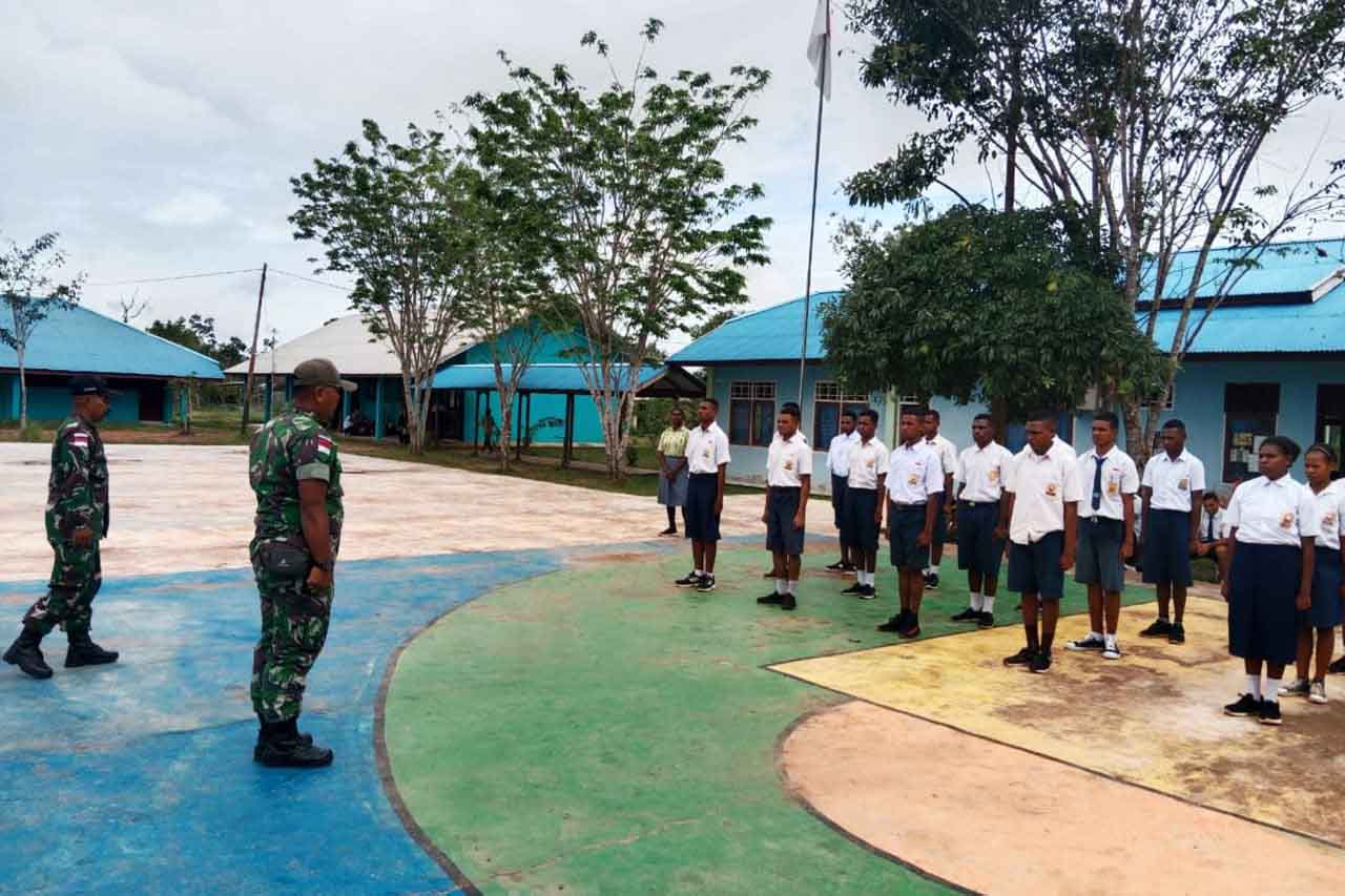 ▴kodim 1707/merauke▴ BABINSA DAN PERSONEL SATGAS SELEKSI PASKIBRA DI SMK NEGERI 11 SOTA