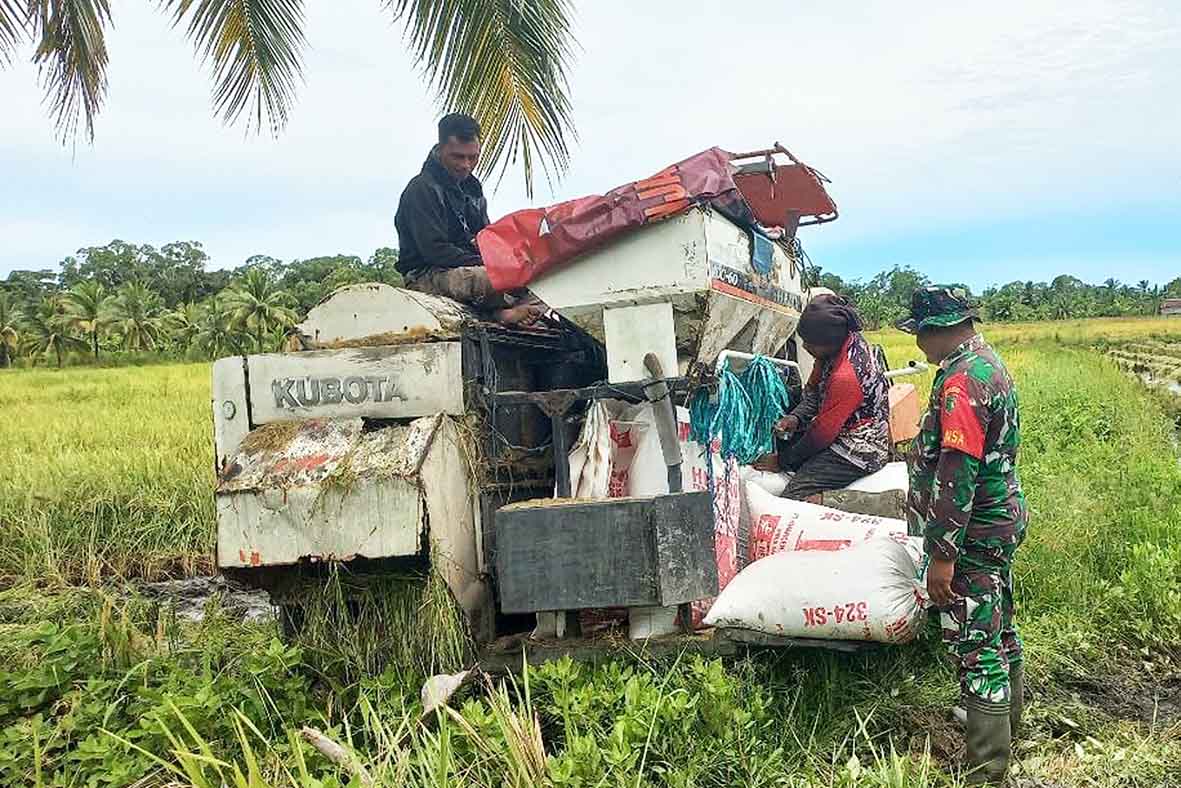 Kali ini Babinsa Koptu Harsono melakukan pendampingan dan membantu keluarga Bapak Irvan salah satu Petani Kampung Onggaya yang sedang memanen padi dilahan sawah miliknya dengan luas 1 Ha”. ucap Danramil Merauke pada hari Kamis tanggal 10 April 2025.