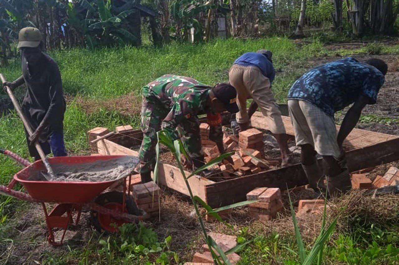 ▴kodim 1707/merauke▴ BABINSA KIMAAM BANTU WARGA MEMBUAT JAMBAN SEHAT