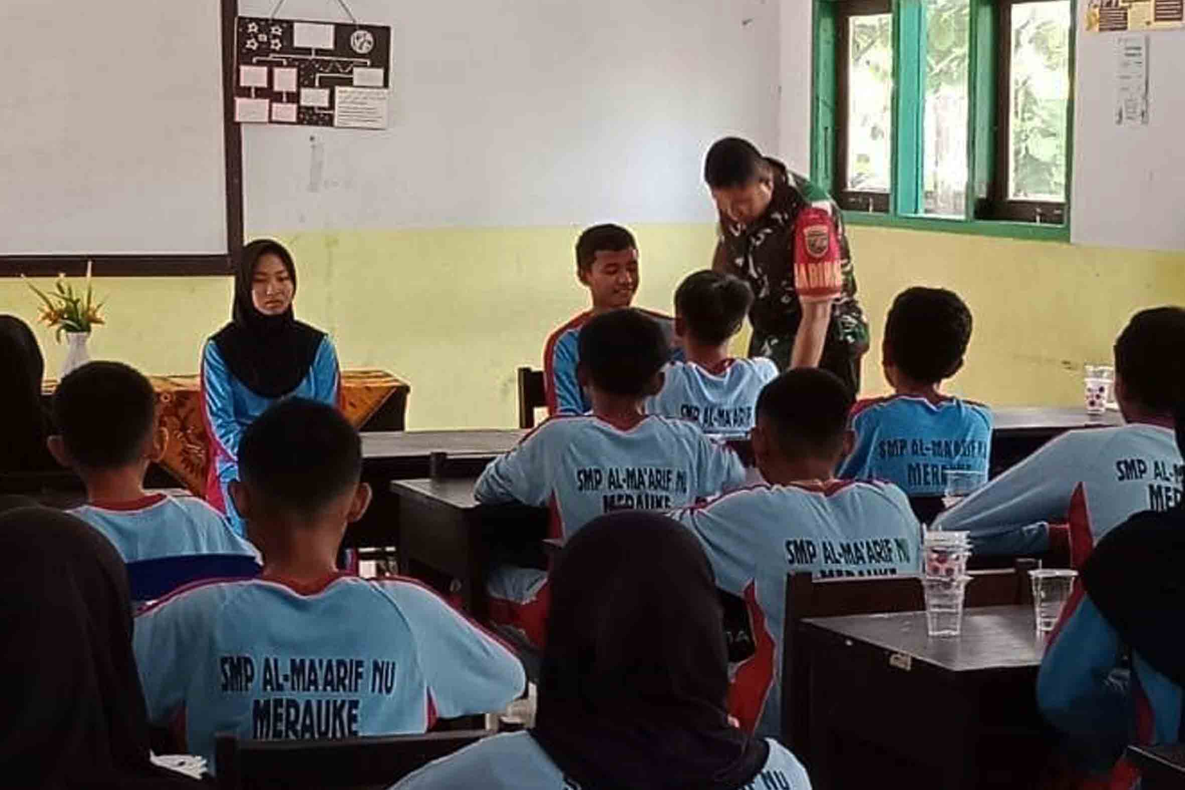 Sebagai upaya dalam membantu meningkatkan kekompakan dan kedisiplinan siswa-siswi yang berada di wilayah teritorialnya, Babinsa Koramil 1707-02/Merauke Kodim 1707/Merauke Serka Sufla dan Sertu Salvator memberikan latihan baris berbaris kepada siswa-siswi SMP Al-Ma'Arif NU Merauke.