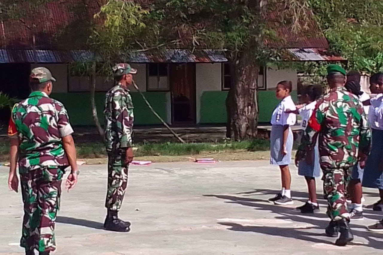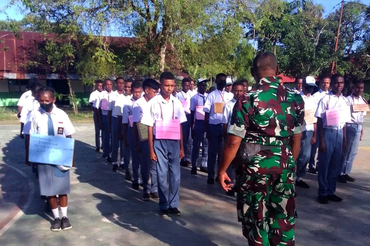 ▴kodim 1707/merauke▴ BABINSA KORAMIL 1707-05/MERAUKE LATIH BARIS BERBARIS SISWA/I SMA