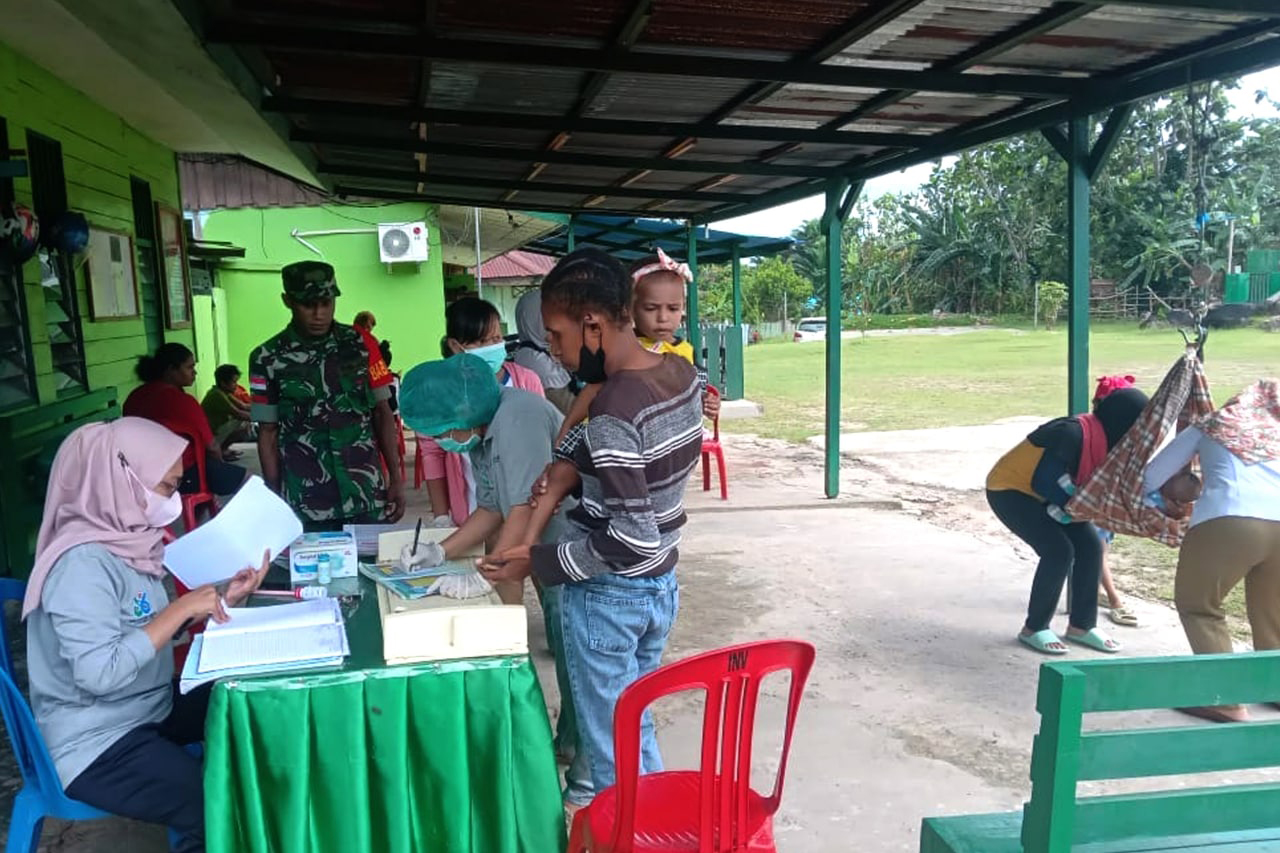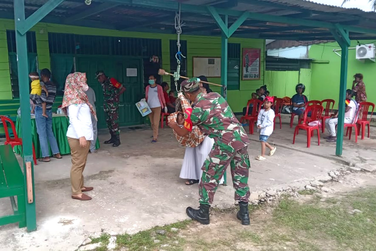 Babinsa Koramil 1707-07/Kepi jajaran Kodim 1707/Merauke Sertu Lilik Agus dan Praka Manuel Demotekay melaksanakan pendampingan kepada petugas kesehatan Puskesmas Kepi dan Kader Posyandu dalam melakukan kegiatan Posyandu yang dilaksanakan di Makoramil 1707-07/Kepi Jln. Kalimantan Distrik Obaa Kabupaten Mappi. Selasa (20/9/2022).