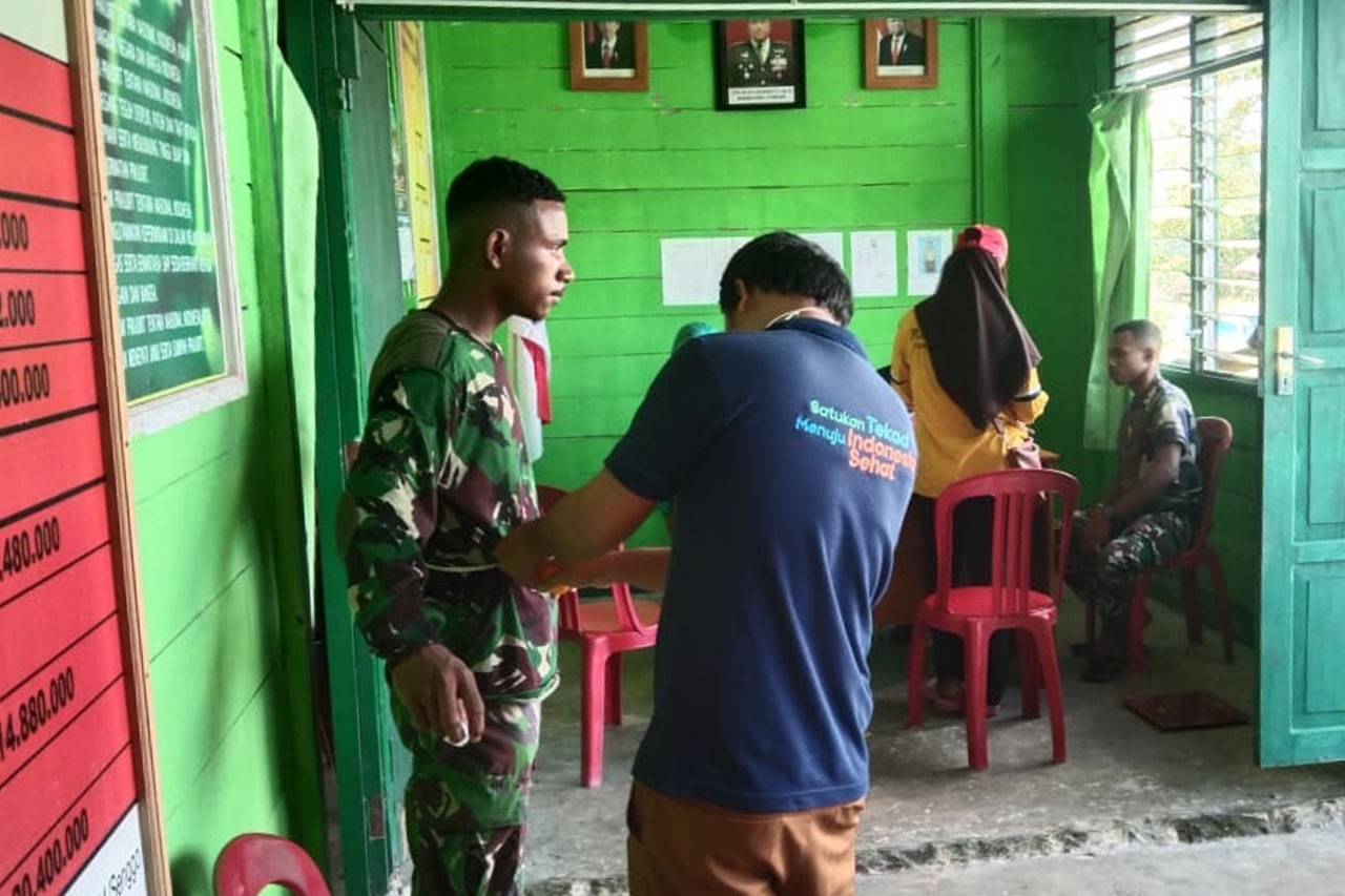 Babinsa Koramil 1707-14/Senggo jajaran Kodim 1707/Merauke yang dipimpin oleh Sertu Sumardin mengikuti screening Penyakit Tidak Menular (PTM) yang diselenggarakan oleh petugas kesehatan Puskesmas Senggo bertempat di Aula Makoramil 1707-14/Senggo Kampung Senggo Distrik Citak Mitak Kabupaten Mappi. Jum'at (4/11/22).