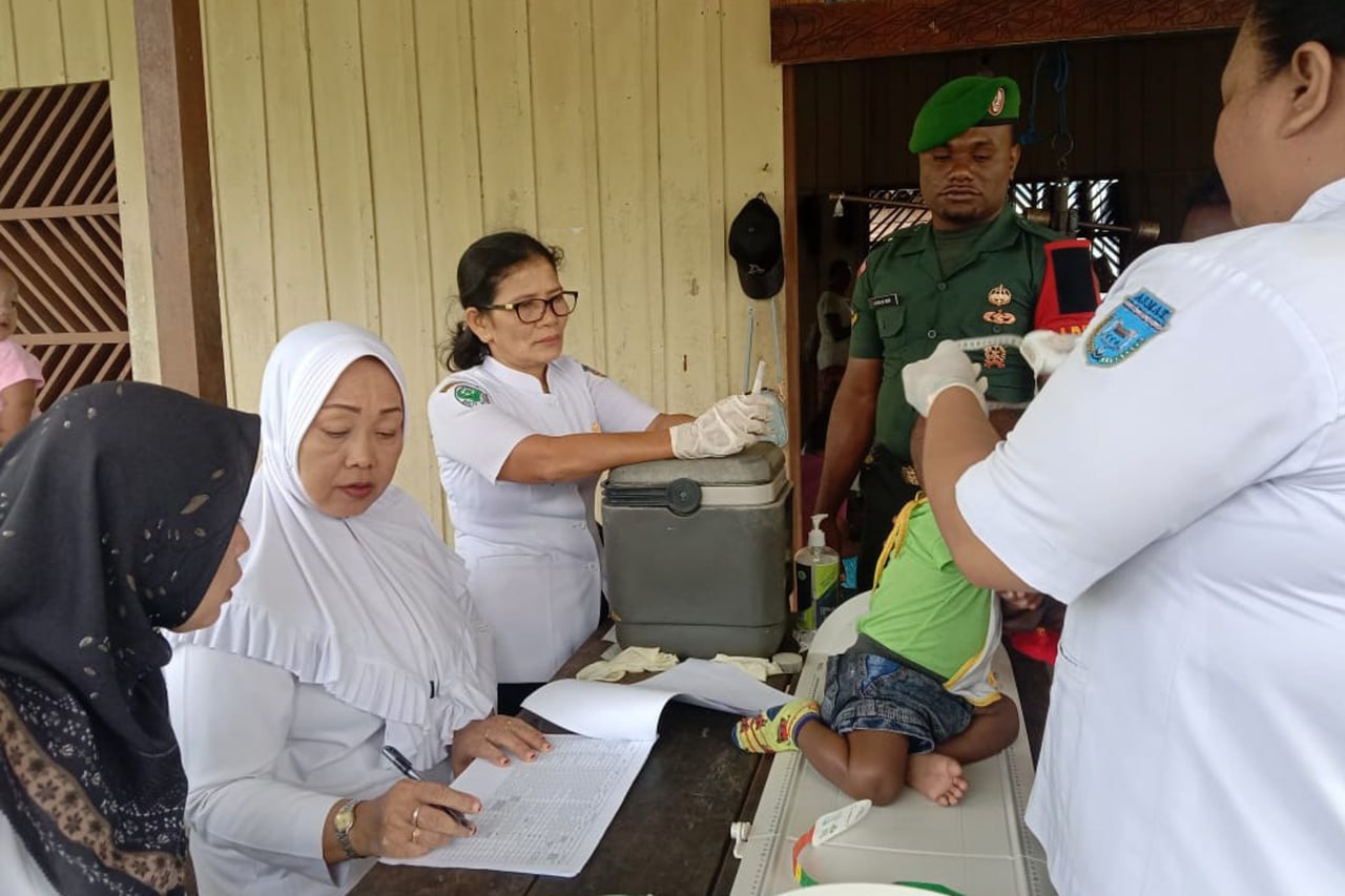 ▴kodim 1707/merauke▴ BABINSA KORAMIL ATSJ DAMPINGI PETUGAS KESEHATAN GELAR IMUNISASI