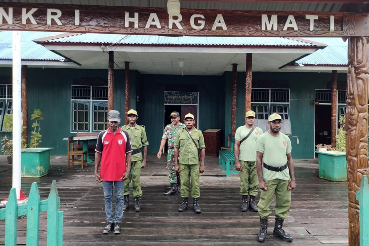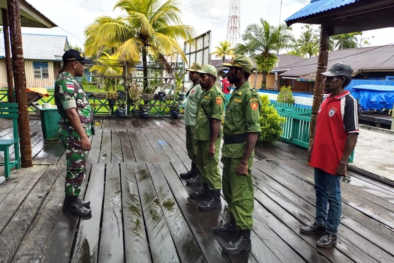 Babinsa Koramil 1707-19/Atsj Kodim 1707/Merauke Serka Laode Dirman memberikan pelatihan baris berbaris kepada Perlindungan Masyarakat (Linmas) Kampung Yasiu Distrik Atsj Kabupaten Asmat - Papua Selatan. Kamis (9/11/2023).