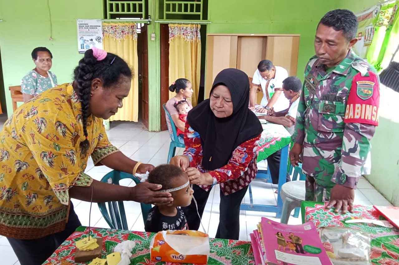 ▴kodim 1707/merauke▴ BABINSA KORAMIL ELIKOBEL BANTU PETUGAS KESEHATAN PUSKESMAS BUPUL GELAR POSYANDU