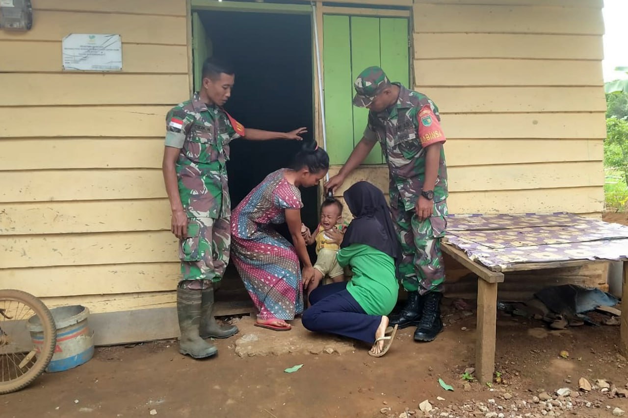 Bertempat di Kampung Metaat Makmur Distrik Elikobel Kabupaten Merauke - Papua Selatan, Babinsa Koramil 1707-17/Elikobel Kodim 1707/Merauke Serma Triono dan Serda Didik Wahyudi melaksanakan pendampingan dan membantu petugas kesehatan Puskesmas Kampung Bouwer dalam melakukan pengecekan kepada anak stunting di Kampung Bouwer. Kamis (25/5/23).