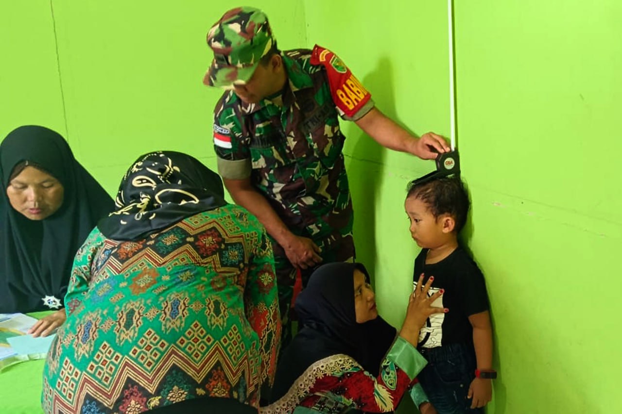 "Selain melaksanakan pendampingan dikesempatan tersebut Babinsa Sertu Himawan Suryadi juga membantu petugas kesehatan Puskesmas Bupul dalam kegiatan Posyandu diantaranya penimbangan berat badan dan pengukuran tinggi badan balita". ungkap Danramil 1707-17/Elikobel.