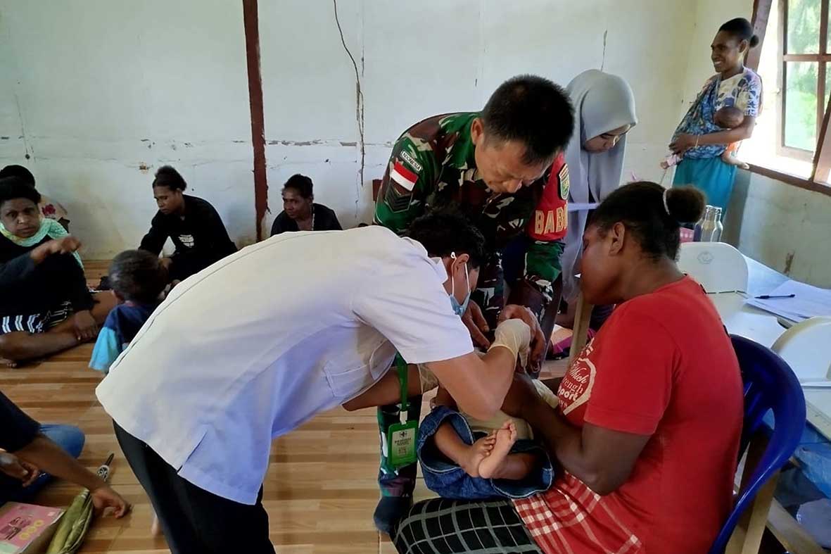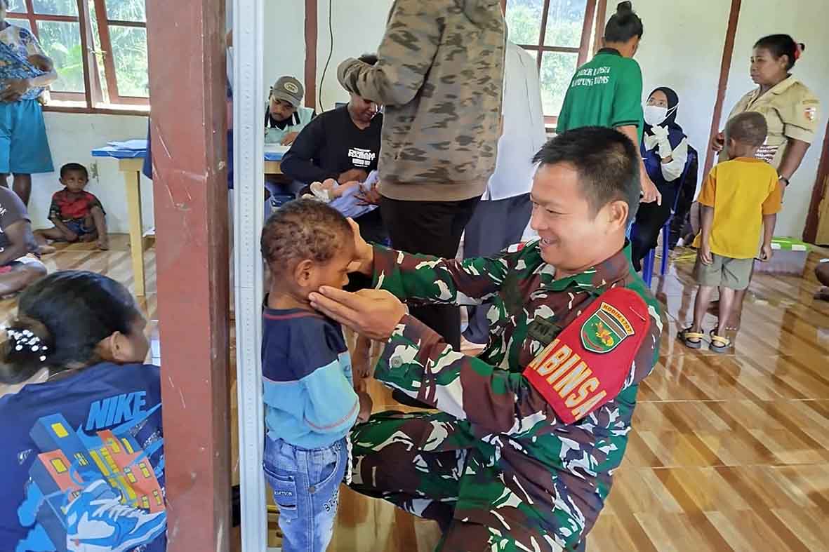 Sebagai upaya dalam ikut serta membantu meningkatkan kesehatan anak yang berada di wilayah teritorialnya, Babinsa Koramil 1707-07/Elikobel Kodim 1707/Merauke Serma Simon Sallao turun langsung dilapangan dan turut serta membantu pelaksanaan Posyandu yang digelar oleh petugas kesehatan Puskesmas Bupul.
