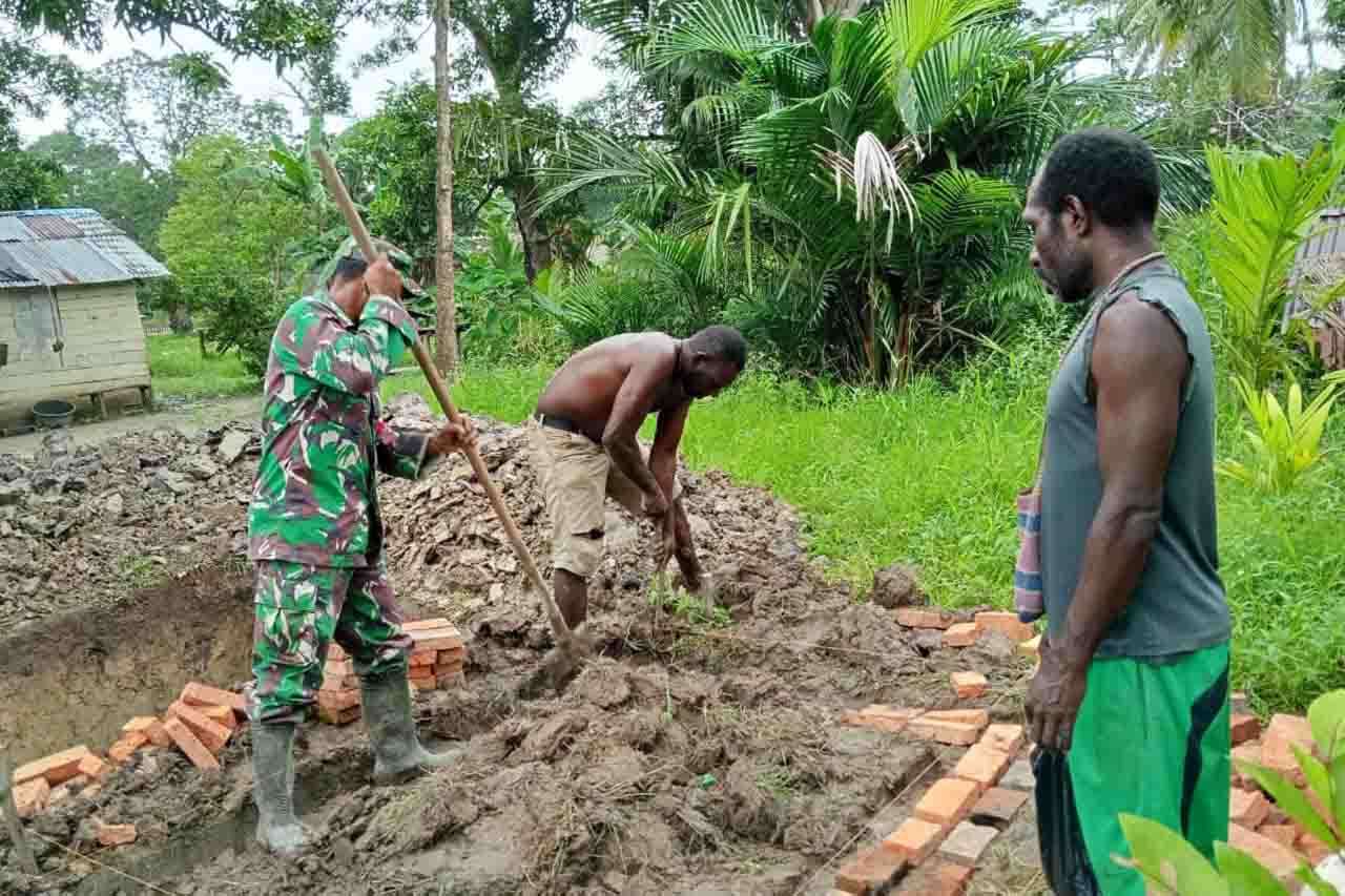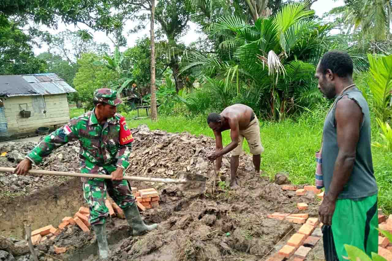▴kodim 1707/merauke▴ BABINSA KORAMIL KIMAAM BANTU MASYARAKAT MEMBUAT PONDASI MCK