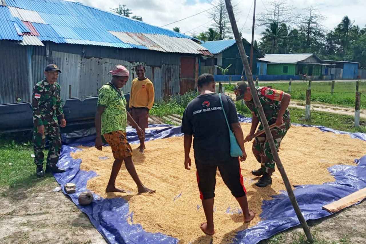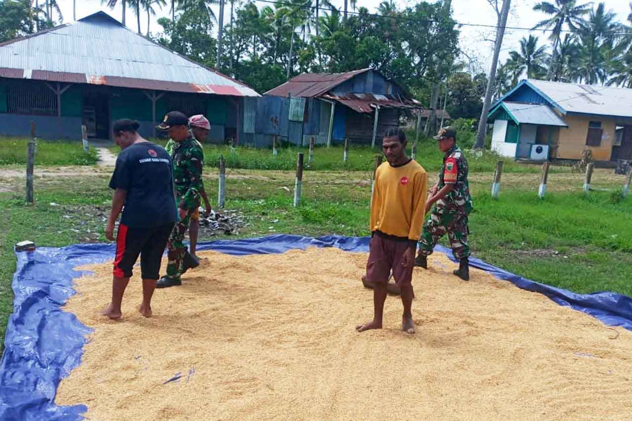 ▴kodim 1707/merauke▴ BABINSA KORAMIL KIMAAM BANTU MASYARAKAT MENJEMUR GABAH