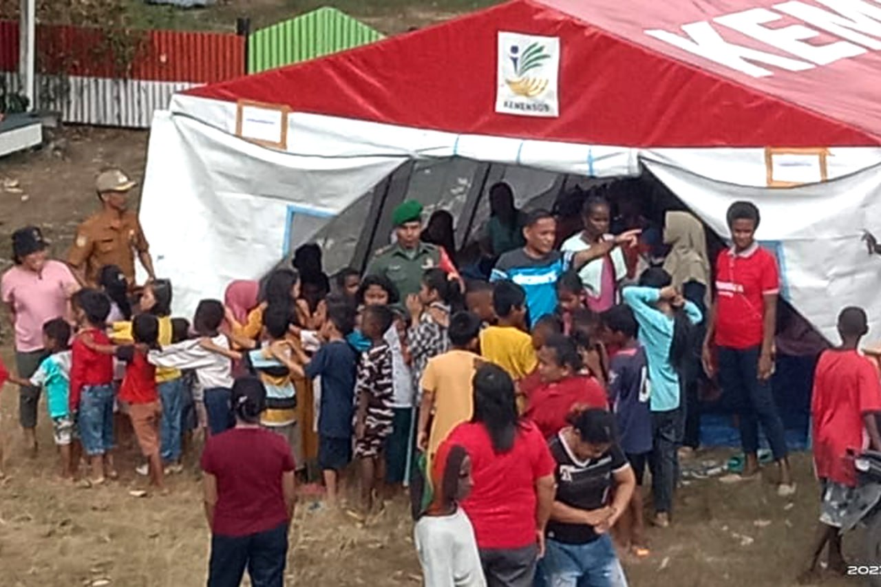 Bintara Pembina Desa (Babinsa) Koramil 1707-09/Kimaam Kodim 1707/Merauke Pelda Julis Lawakabessy mengikuti kegiatan sosialisasi dampak korban bencana (Trauma Healing) yang dilaksanakan oleh Dinas Sosial Kab. Merauke kepada aparat dan masyarakat Kampung Wogekel Distrik Ilwayab Kab. Merauke - Papua Selatan yang terdampak musibah kebakaran beberapa hari yang lalu. Kamis (6/7/2023).