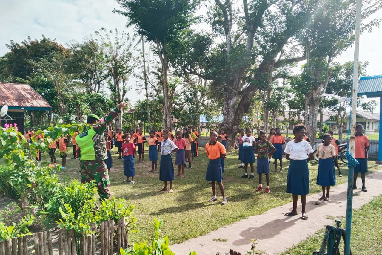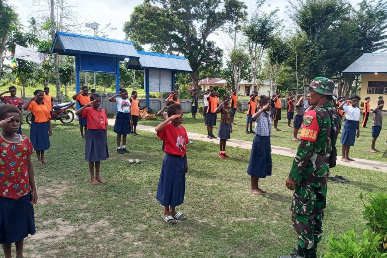 Sebagai upaya membantu meningkatkan semangat, dan disiplin serta bisa melakukan gerakan baris berbaris dengan baik dan benar, Babinsa Koramil 1707-04/Kimaam Kodim 1707/Merauke Serda Krispiyanto Palimbunga memberikan pelatihan baris berbaris kepada siswa-ssiwi SMP Kisito Distrik Kimaam Kabupaten Merauke - Provinsi Papua Selatan.